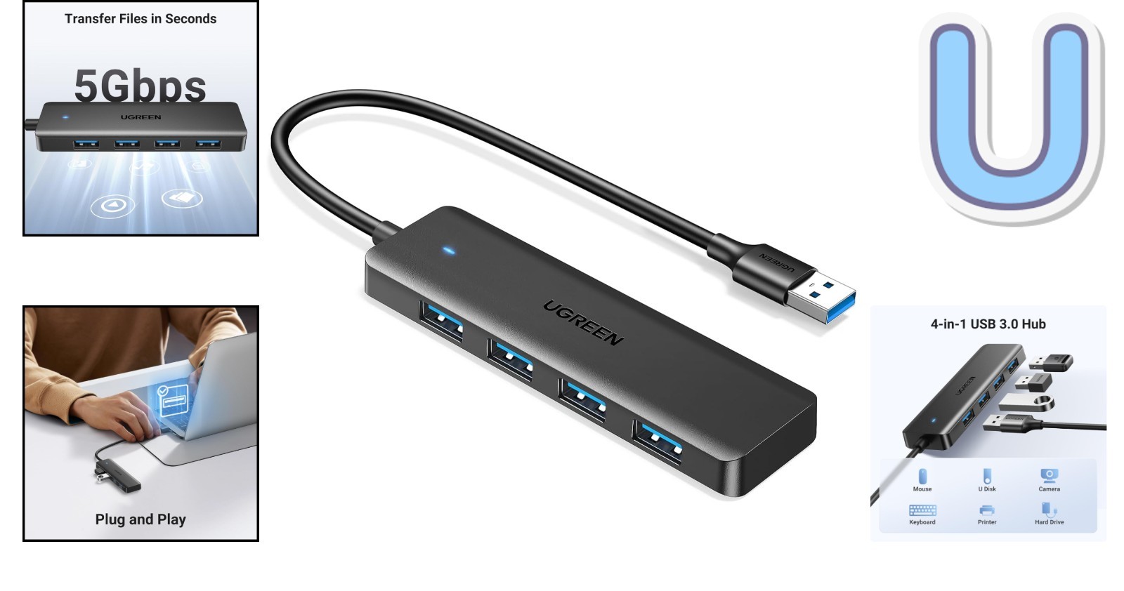 Ultra-Slim 4-Port USB 3.0 Hub - Fast 5Gbps Data Transfer for Ultimate Efficiency