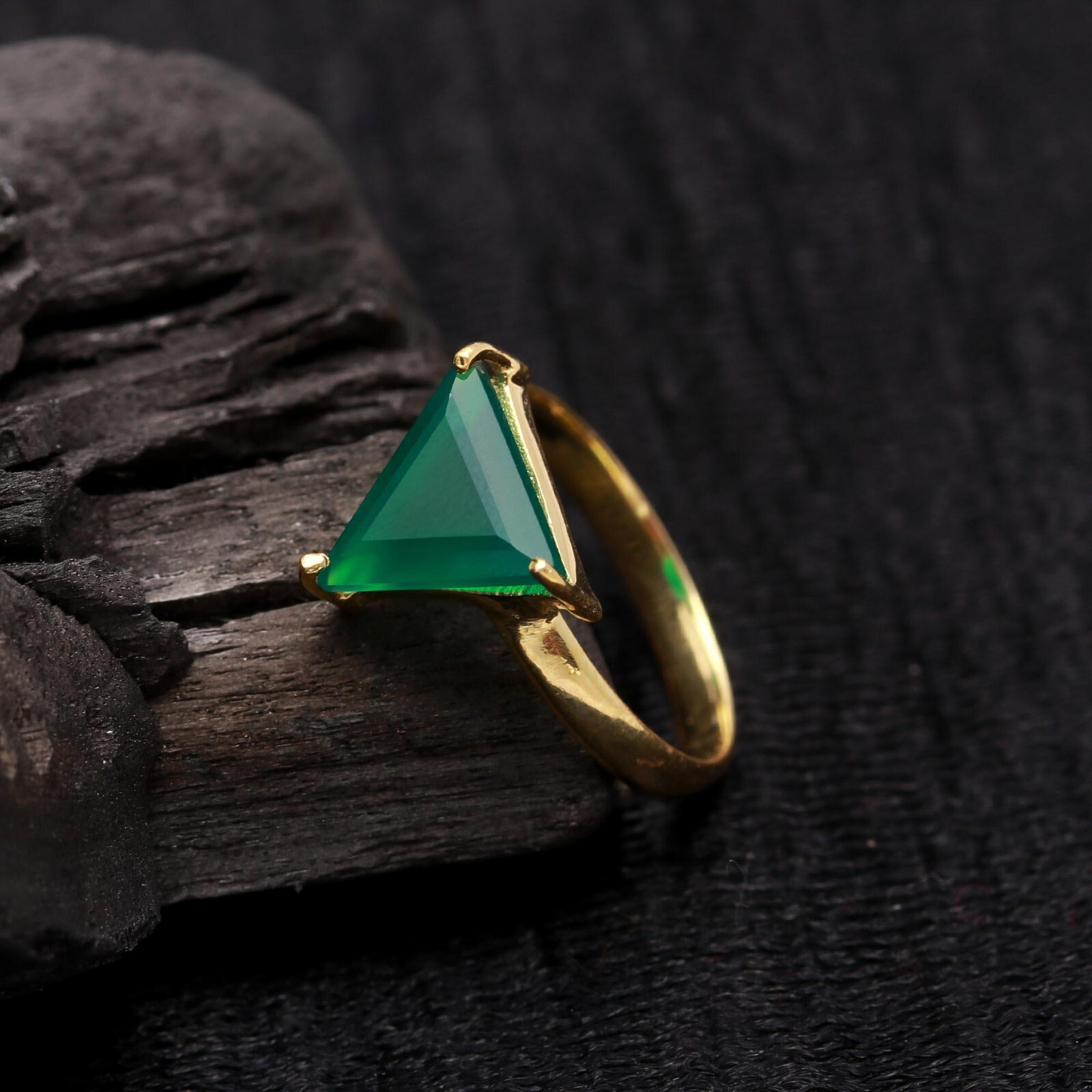 как выглядит Green Onyx Triangle Shape Ring 925 Sterling Silver Gold Plated Jewelry For Her фото