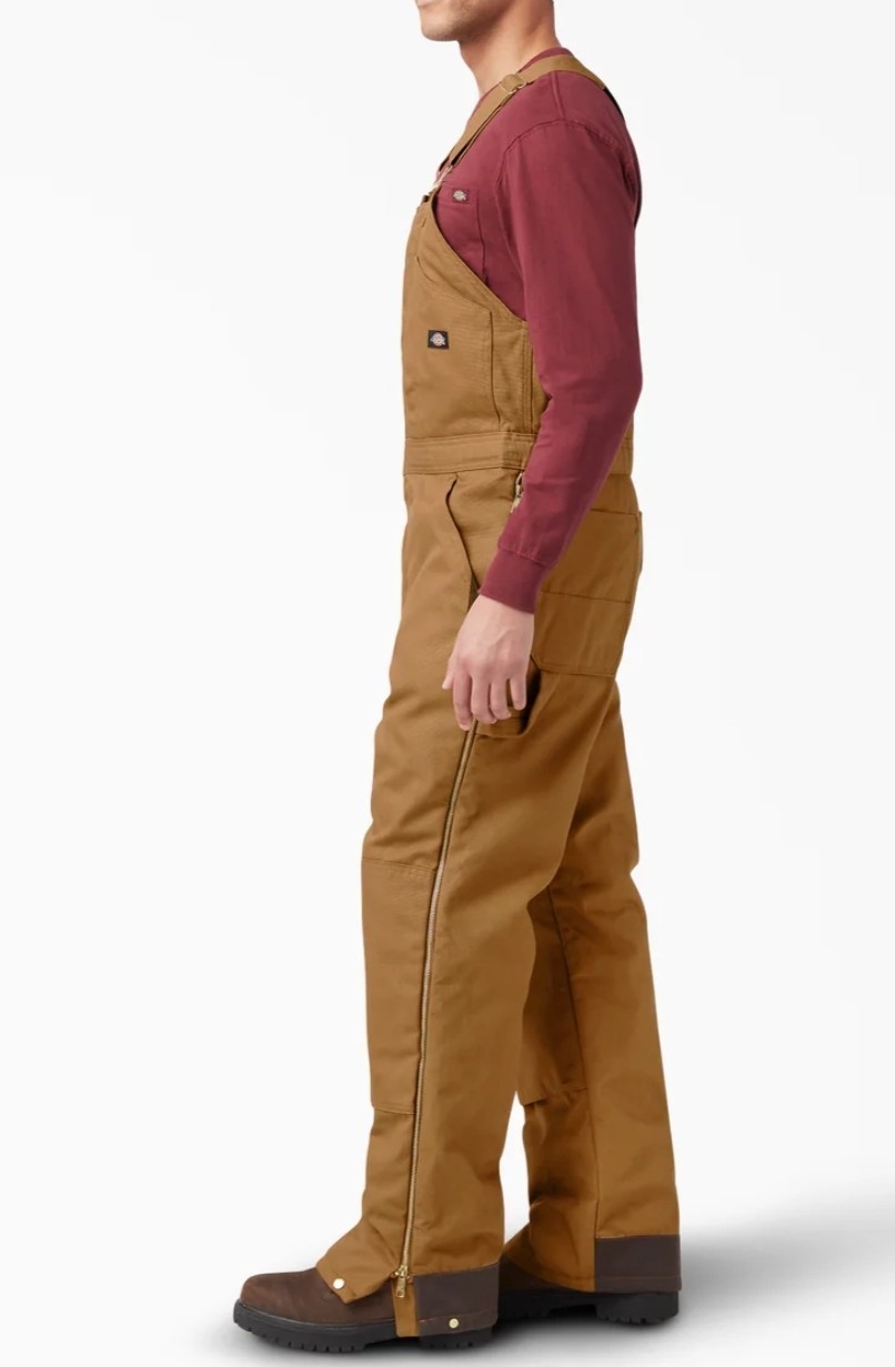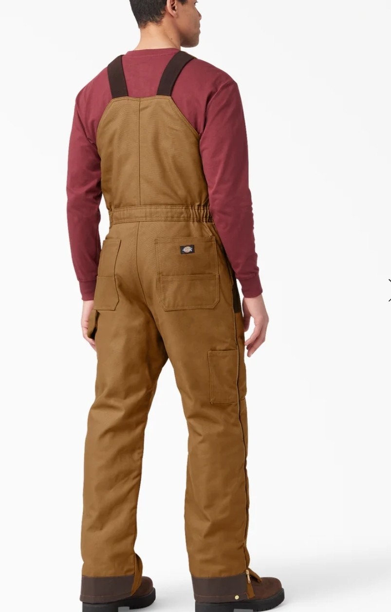 Dickies Men's Sanded Duck Insulated Bib Overall Color Brown Duck Xl