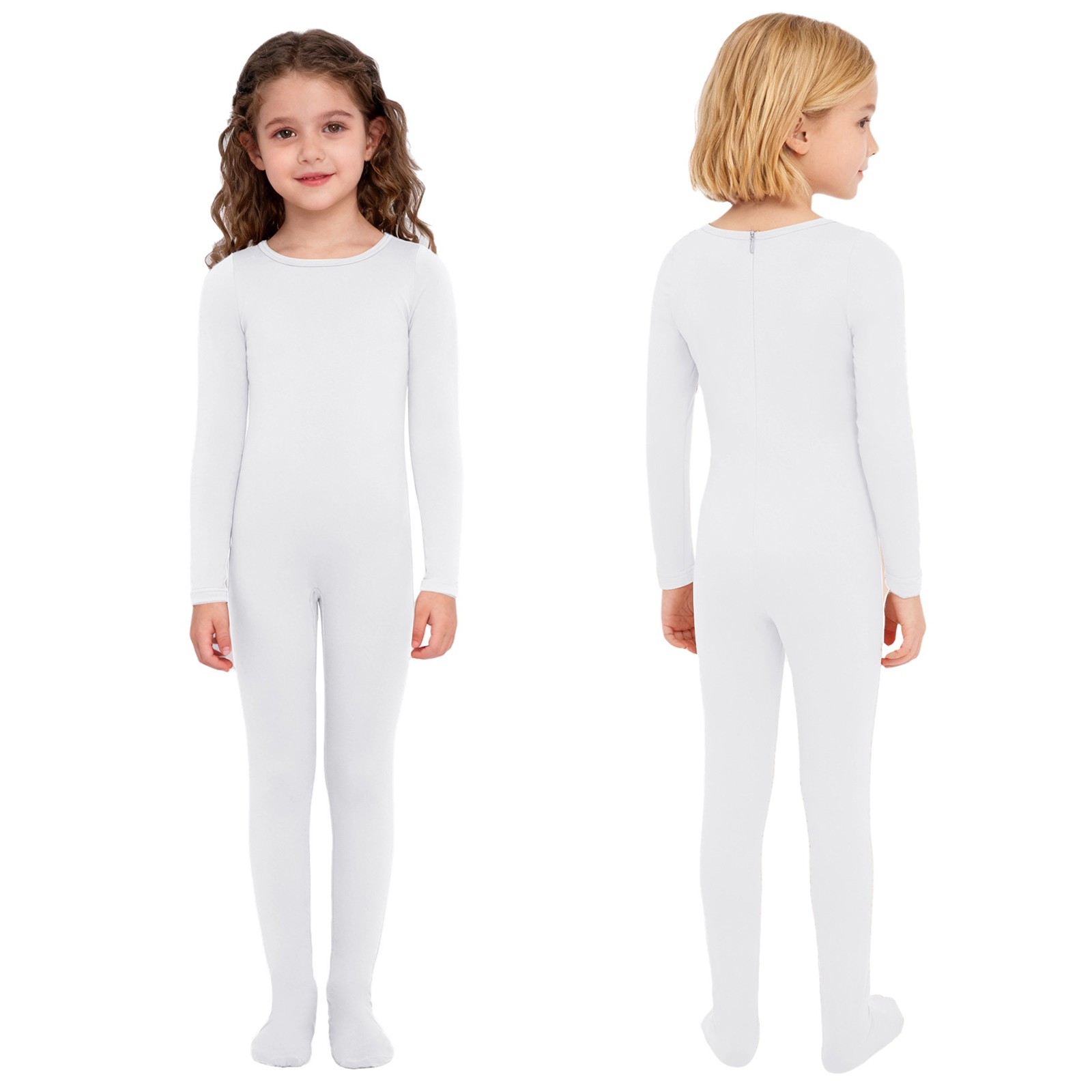 Girls Footed Jumpsuit Full Length Bodysuit Tank Unitard Figure Skating Leotard