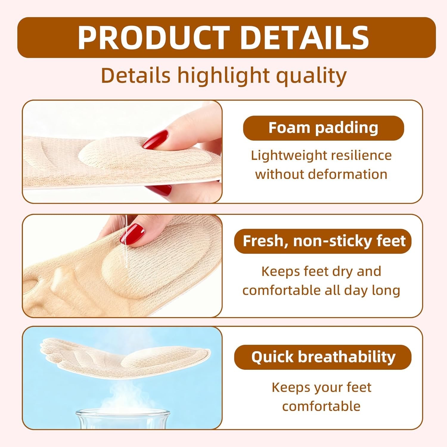 3 Pairs Forefoot Cushion Inserts for Women Shoes, Forefoot Sandals