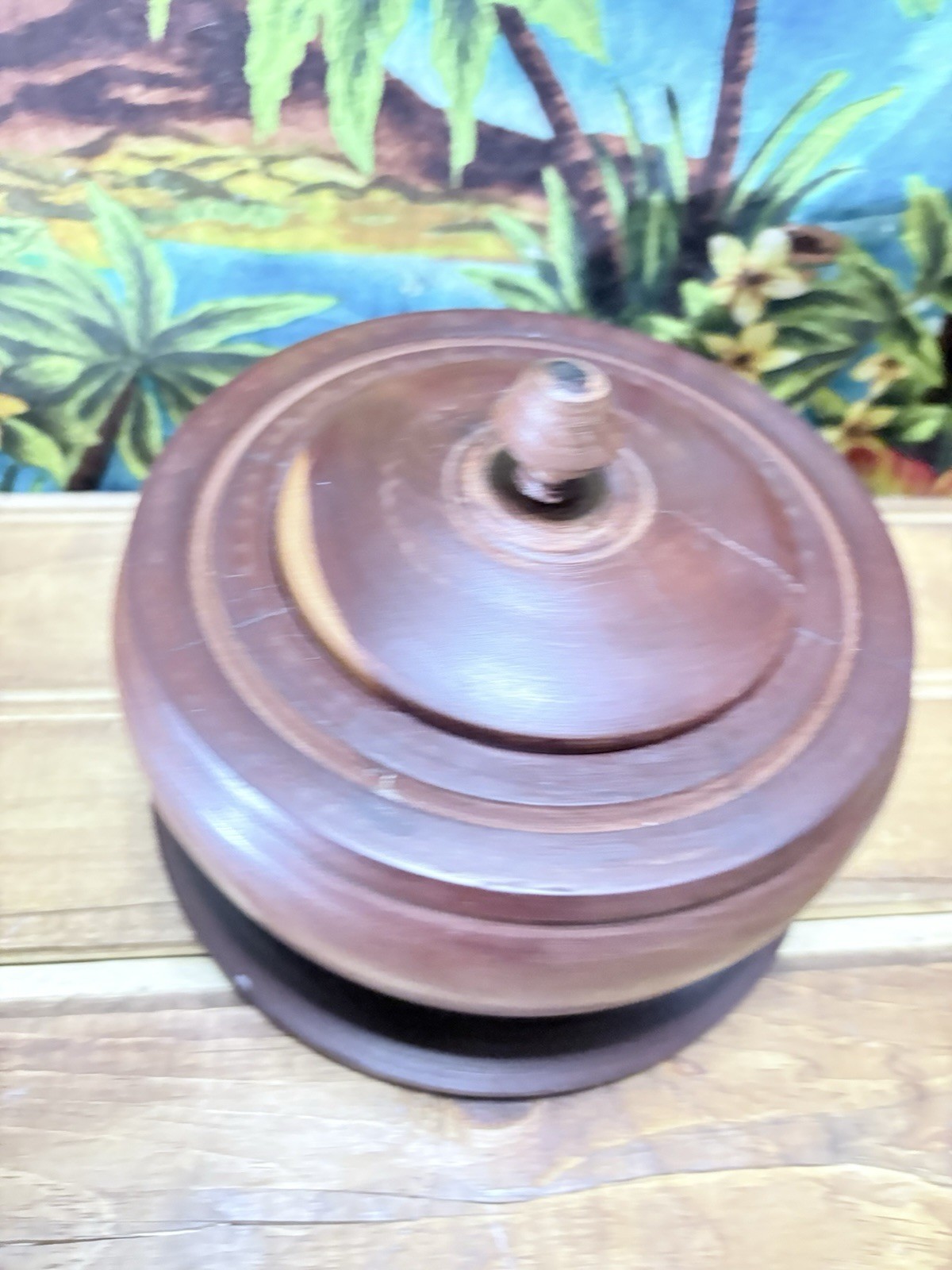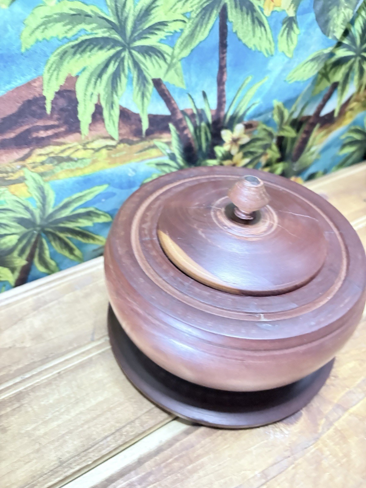 Vintage Handcrafted Wood Turned Lidded Bowl