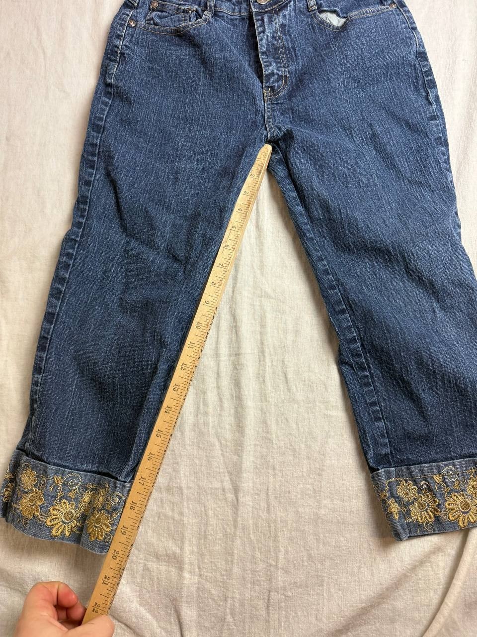 как выглядит Vintage Jeanbay Jeans Size 8 Blue Denim Capri Cuffed Casual Embroidered Floral фото
