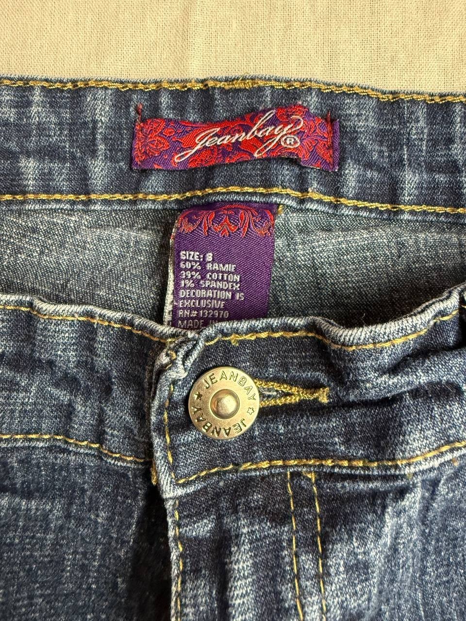 Vintage Jeanbay Jeans Size 8 Blue Denim Capri Cuffed Casual Embroidered Floral