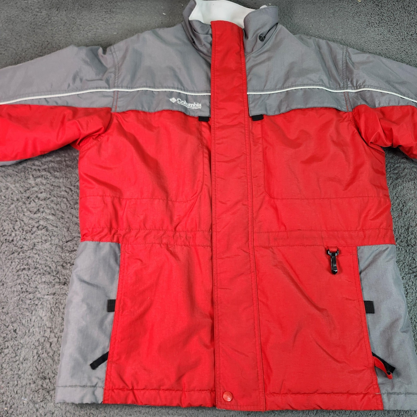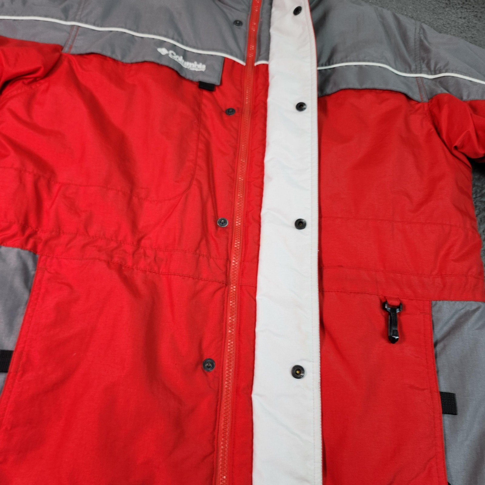 Columbia Ski Jacket Youth 18/20 Red Gray Colorblock Full Zip Insulated Winter