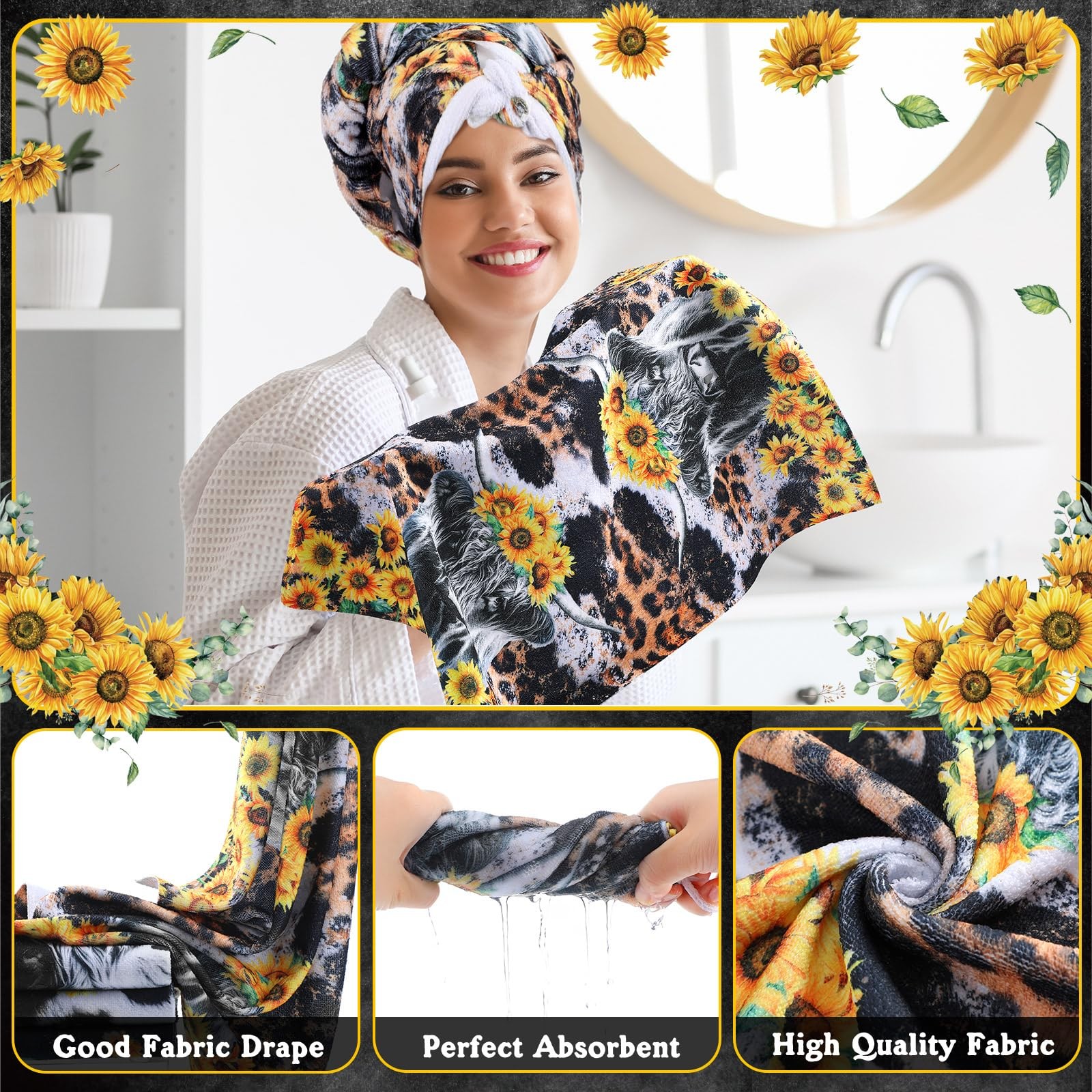 8 Pcs Highland Cow Shower Curtain Sets for Bathroom Sunflower Farm Cow Shower...