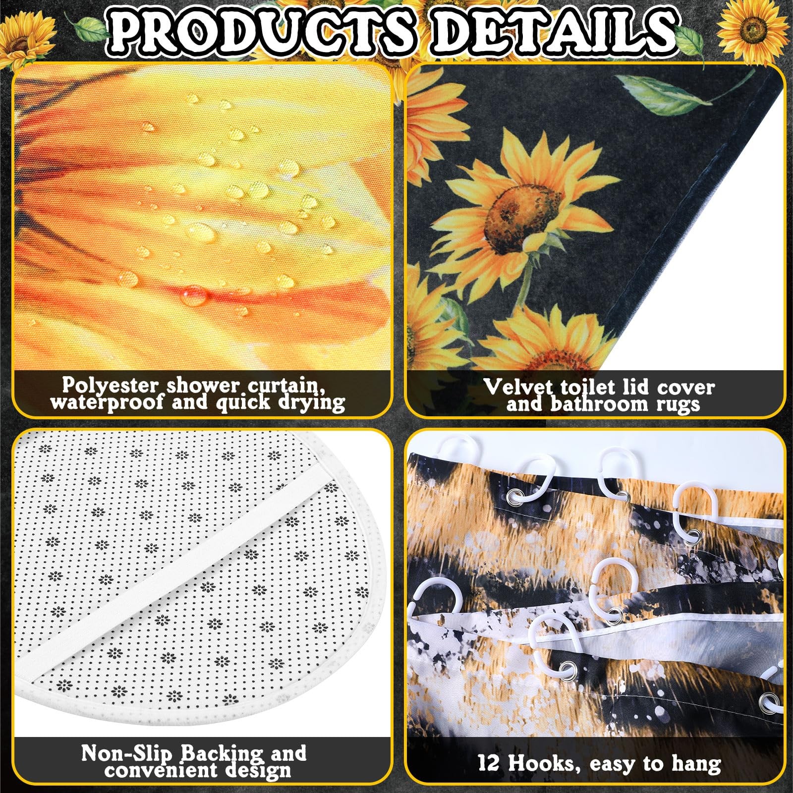 как выглядит 8 Pcs Highland Cow Shower Curtain Sets for Bathroom Sunflower Farm Cow Shower... фото