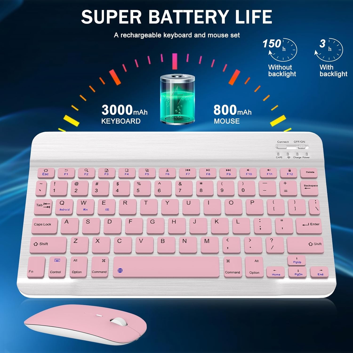 как выглядит Rechargeable Bluetooth Keyboard and Mouse Combo, Universal Ultra-Slim Wireless K фото