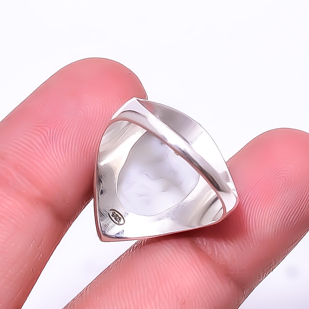 как выглядит White Howlite - United States 925 Sterling Silver Ring S.8.5 R21, Christmas Gift фото