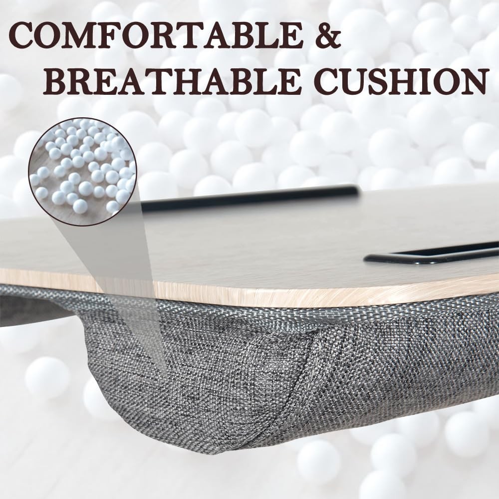 Portable Lap Desk for Laptops up to 16 with Tablet Slot Cushion, Light Wood
