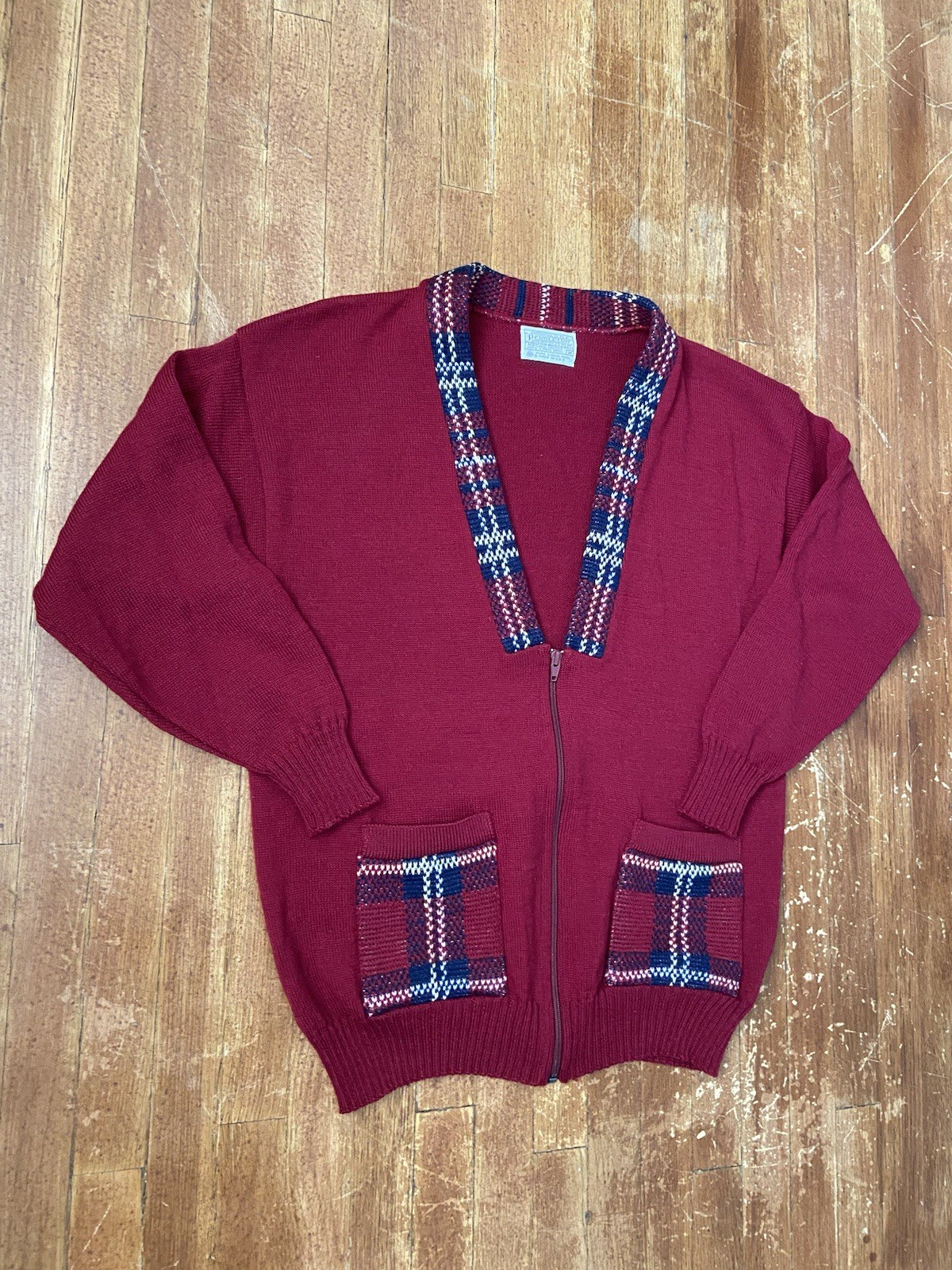 Vintage Pendleton Sweater Mens Medium Wool Cardigan Grandpa Pocket Preppy Plaid