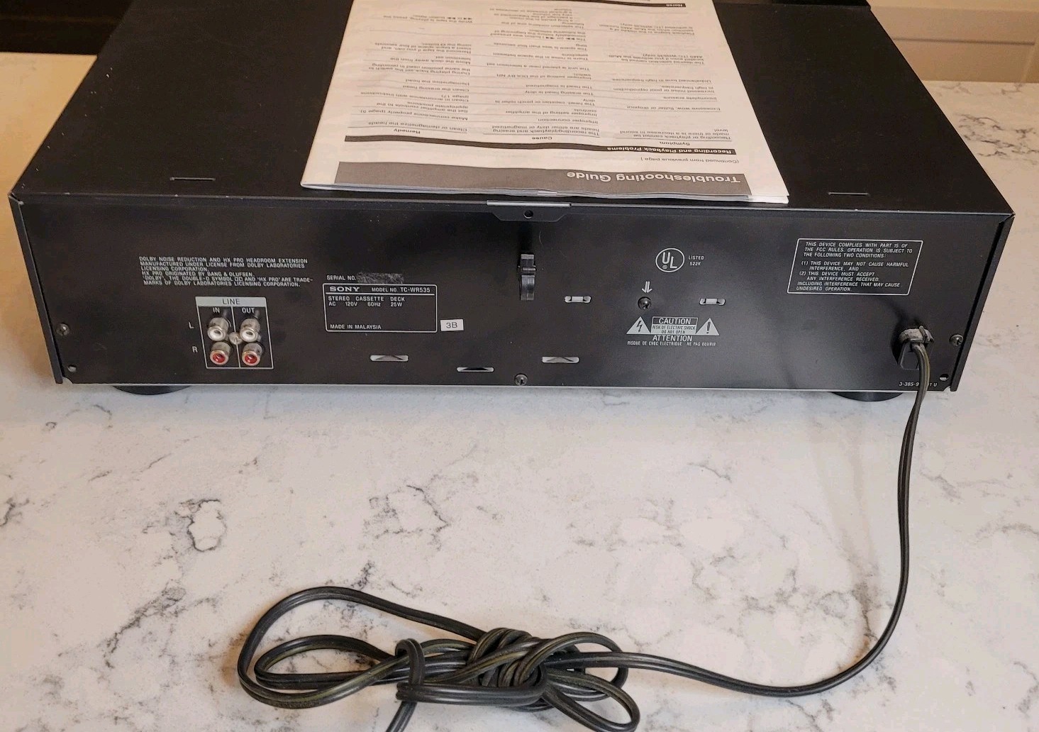 Sony TC-WR535 Dual Auto Reverse Stereo Cassette Deck Manual Tested Works