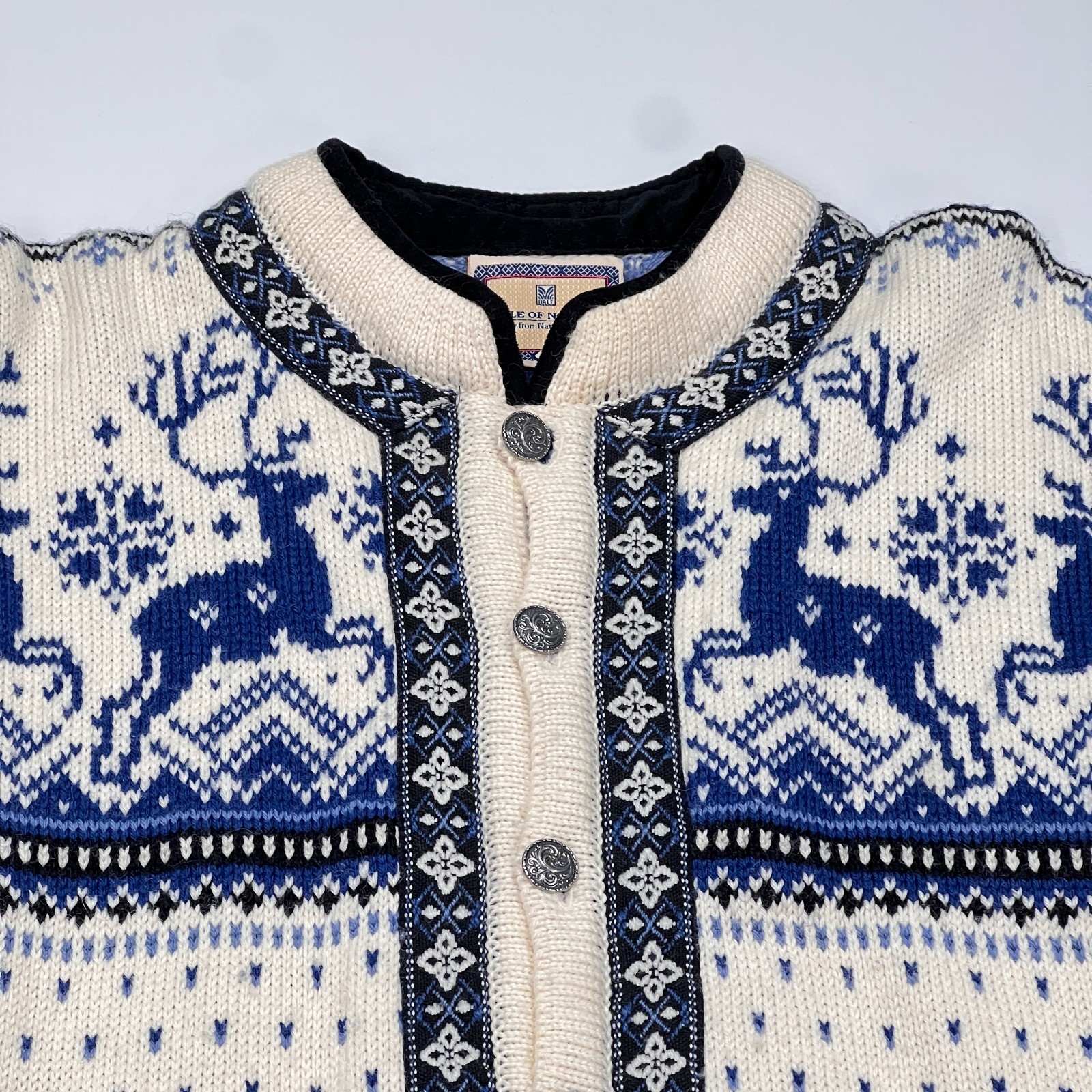 DALE OF NORWAY 100 PURE NEW WOOL SWEATER JACKET CLASSIC FAIR ISLE KNIT MENS L