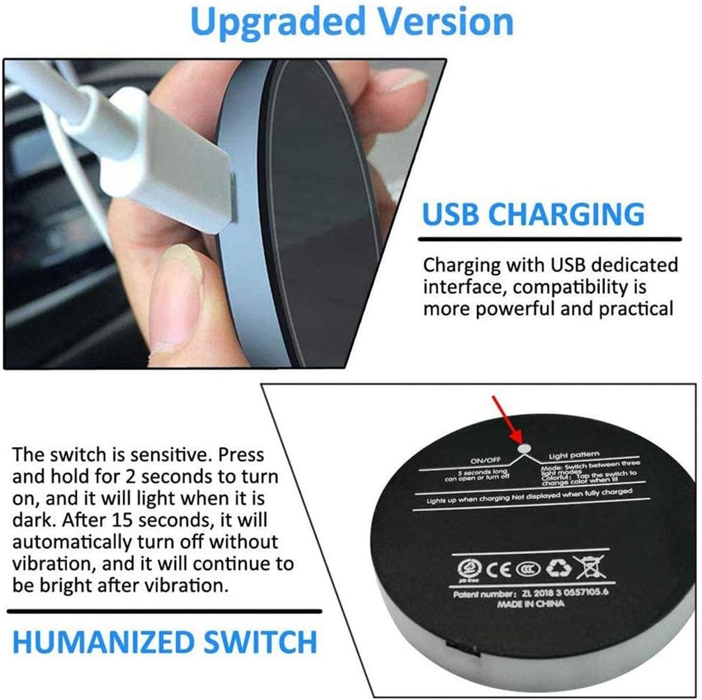 2 Pack LED Cup Holder Lights, Car Coaster with 7 Colors Changing USB Charging Ma