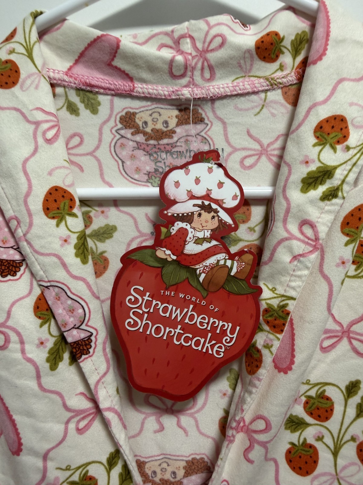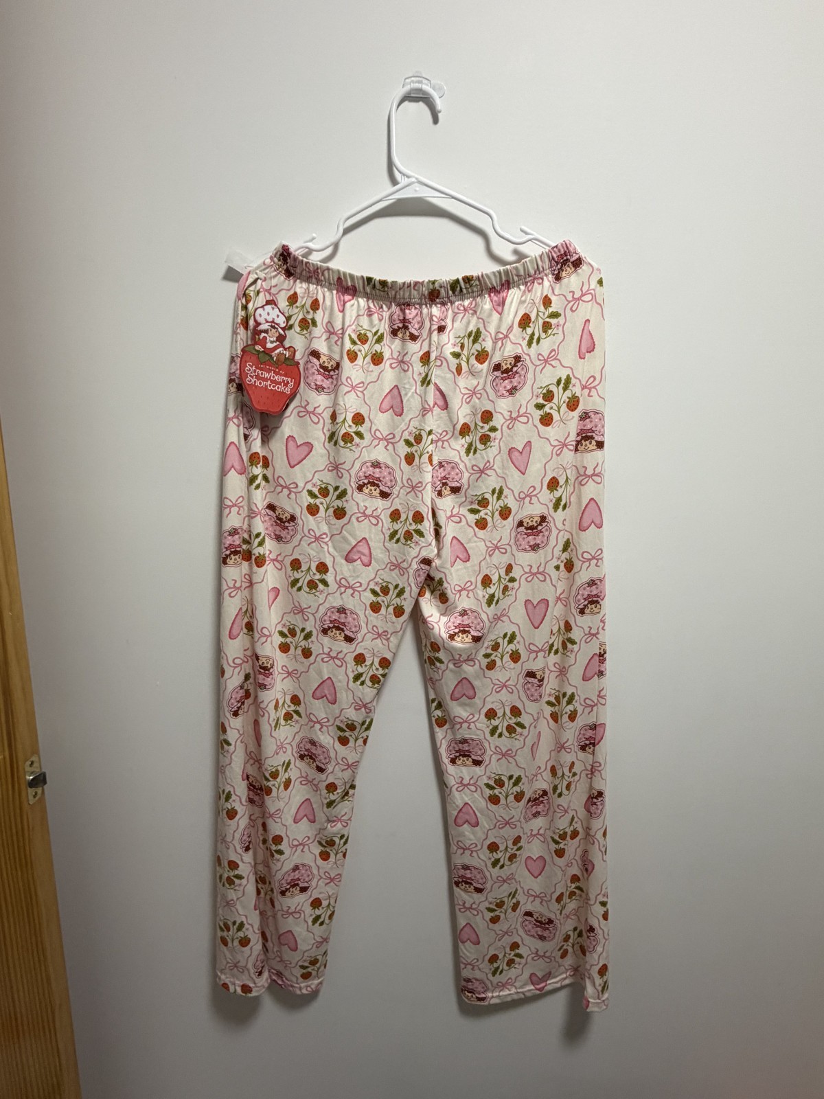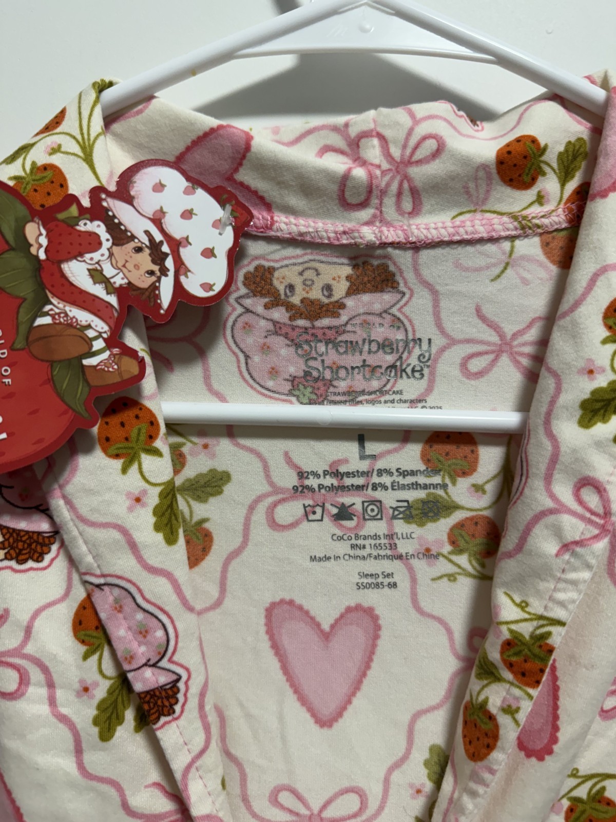 как выглядит Size L - Strawberry Shortcake Pajama Set Tie Front Ruffle Top Pants Pink Hearts фото