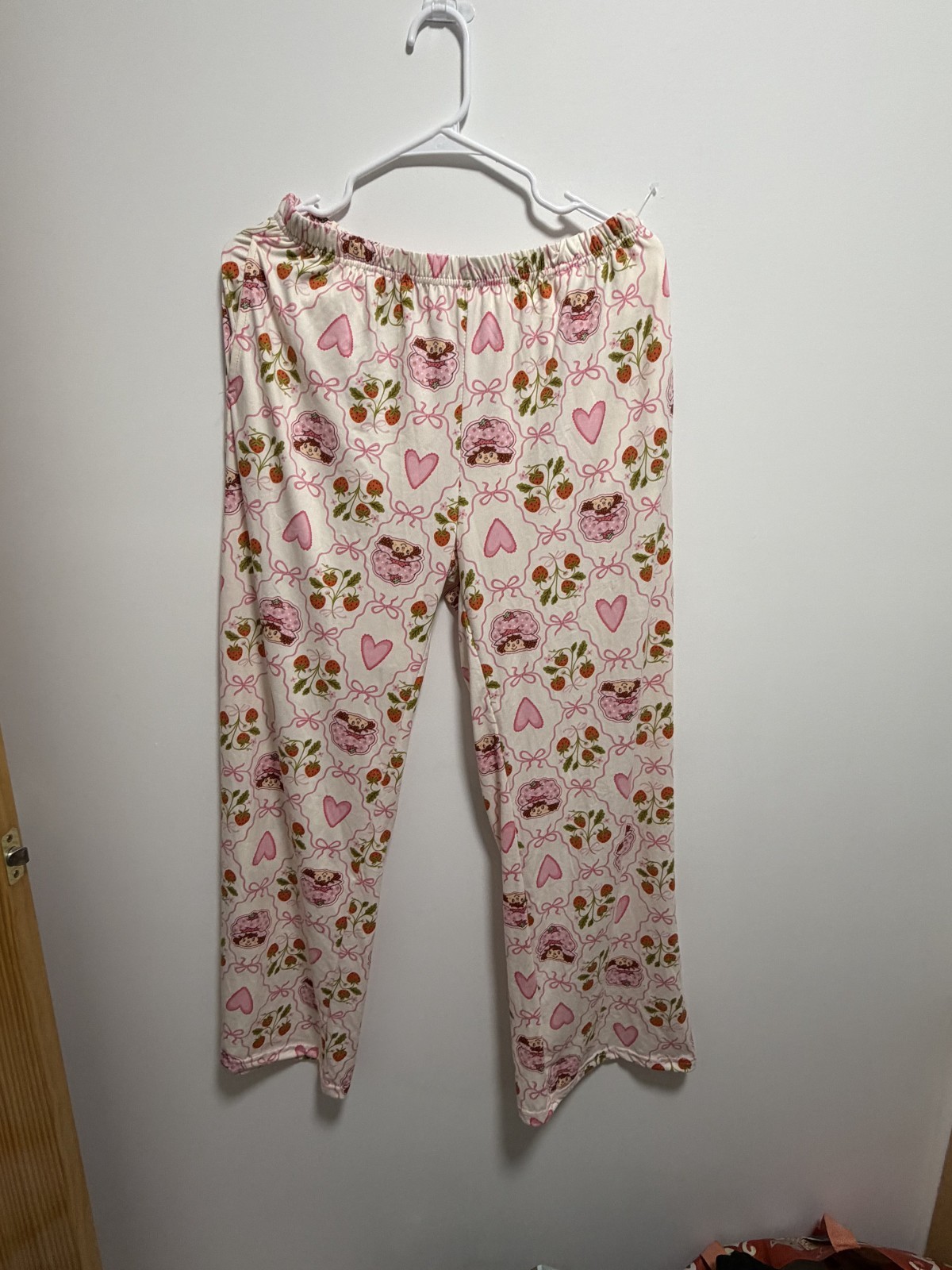 Size L - Strawberry Shortcake Pajama Set Tie Front Ruffle Top Pants Pink Hearts