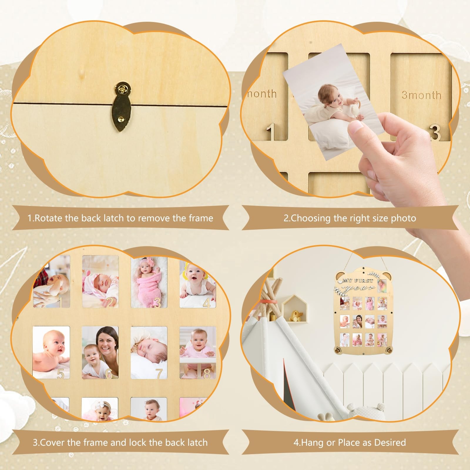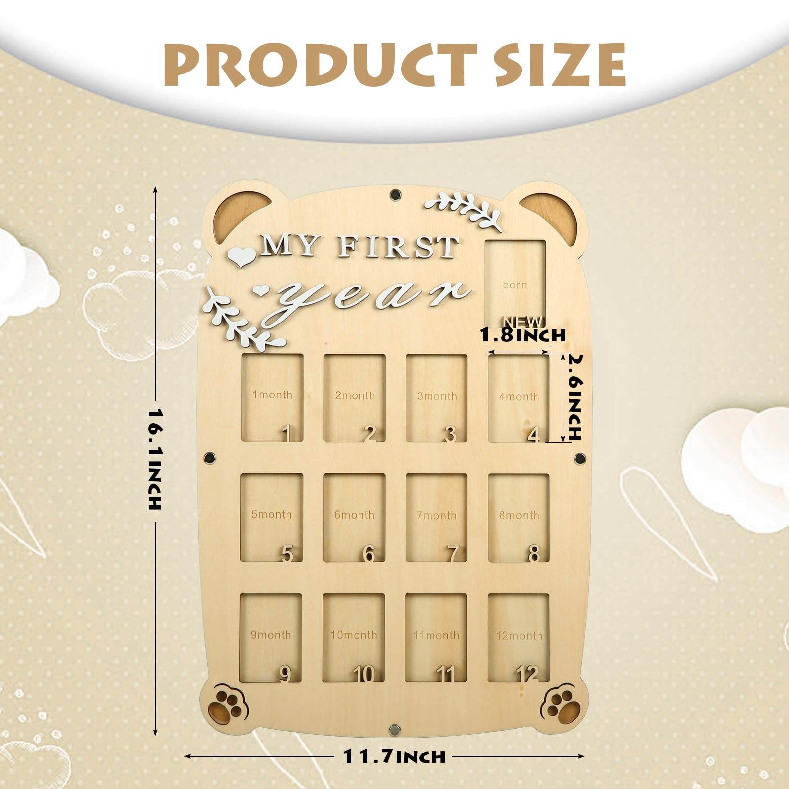 My First Year Picture Frame,One Year Of Photo Board, Baby's First Twelve Mont...
