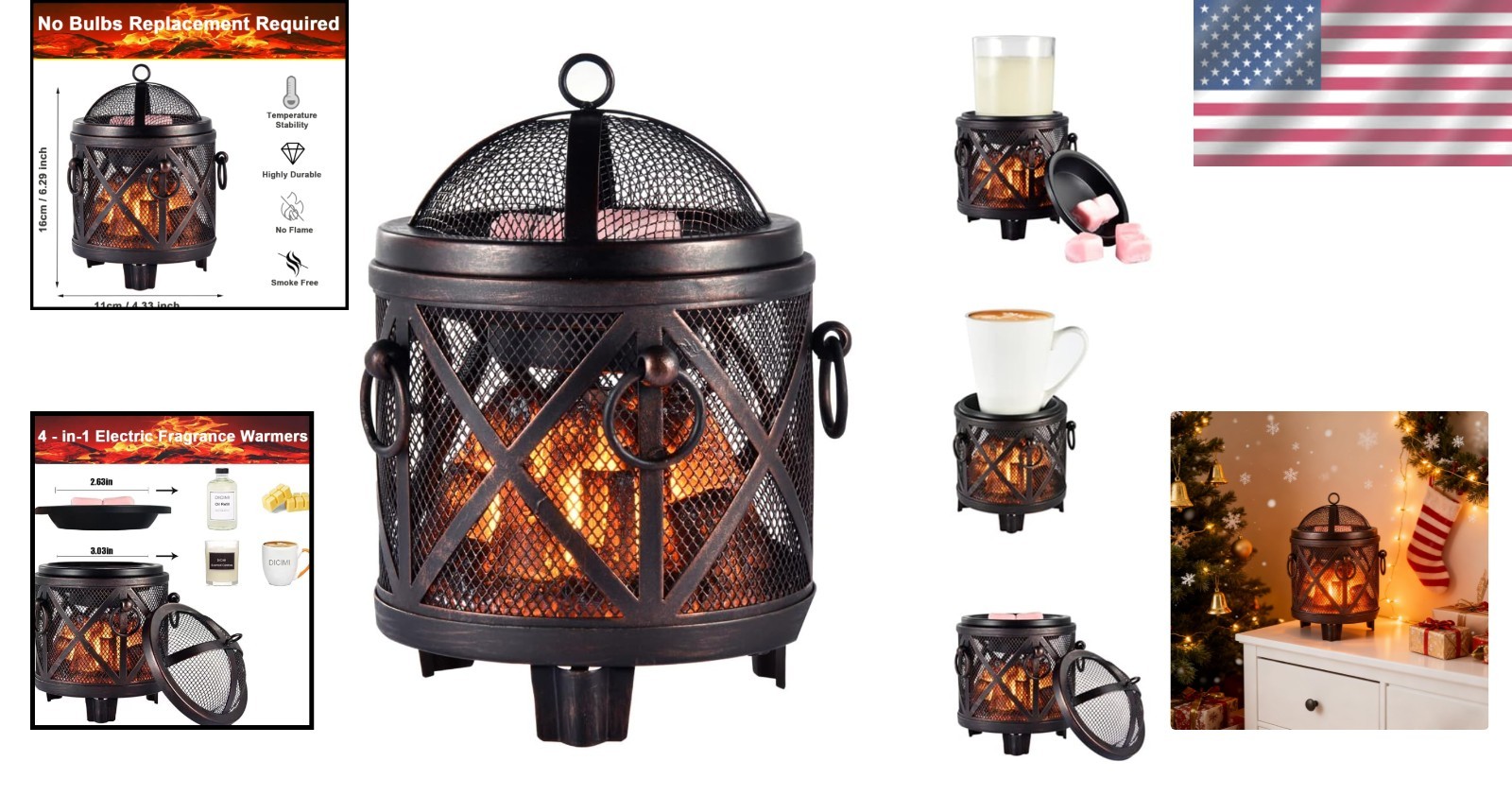 Wax Melt Warmer Bronze 4-in-1 Electric Oil Burner Fireplace Decor Aromatherapy