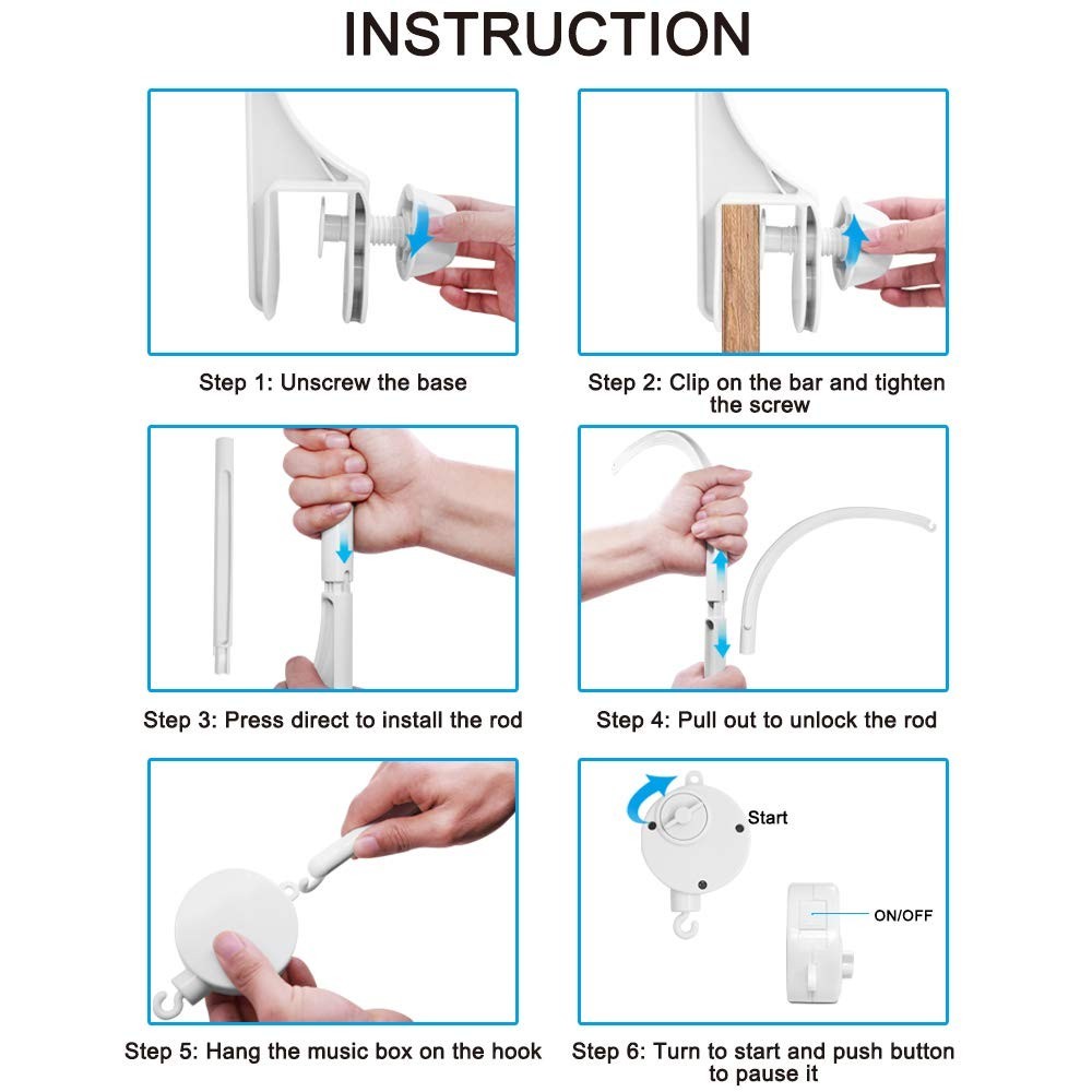 Особенности: Musical, With Lights, Rotating, Wind-up, DIY Customizable, Lightweight, Easy to Assemble, Non-battery operated, Secure Mounting, Visual Stimulation, Auditory Stimulation, Stain Resistant