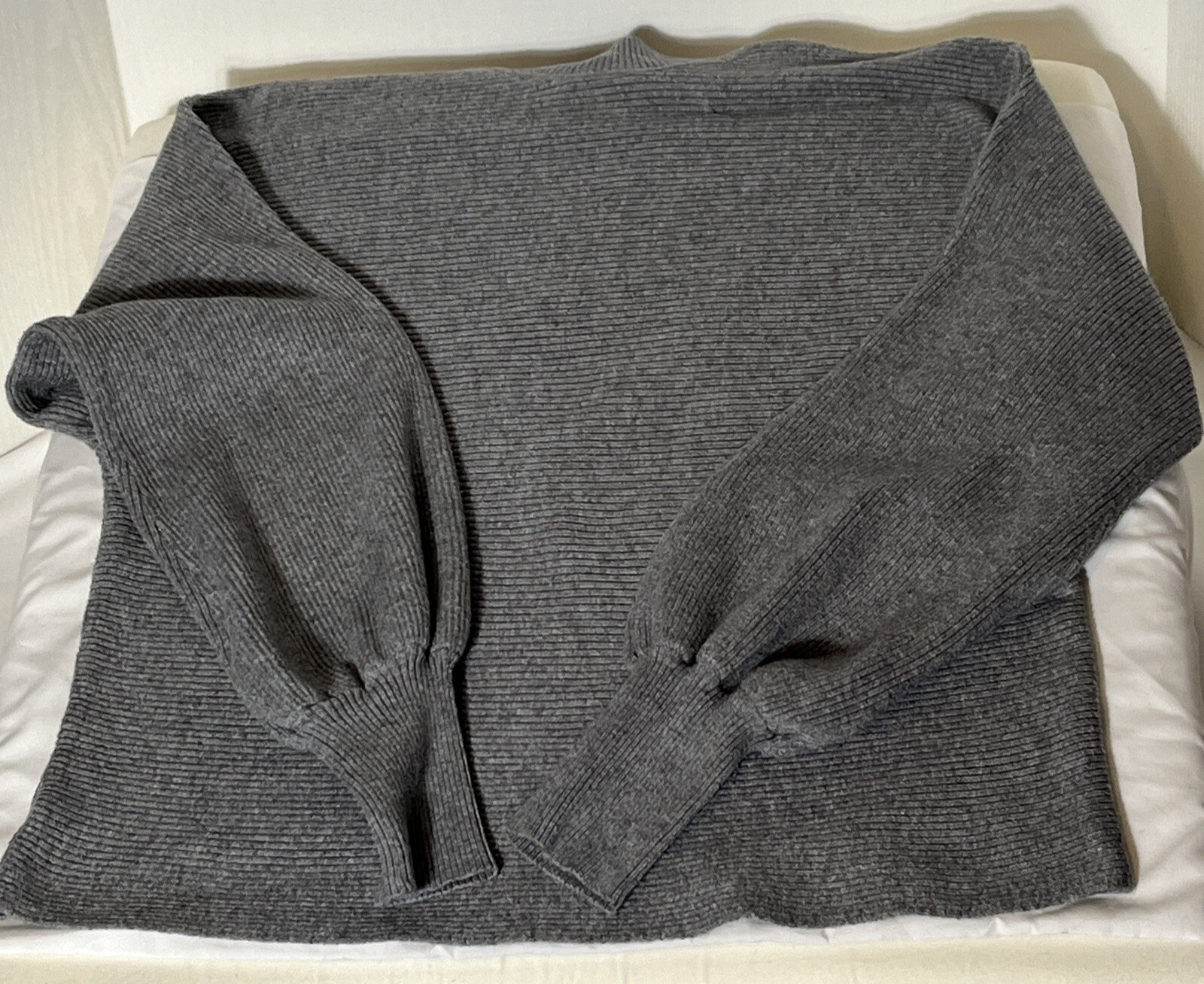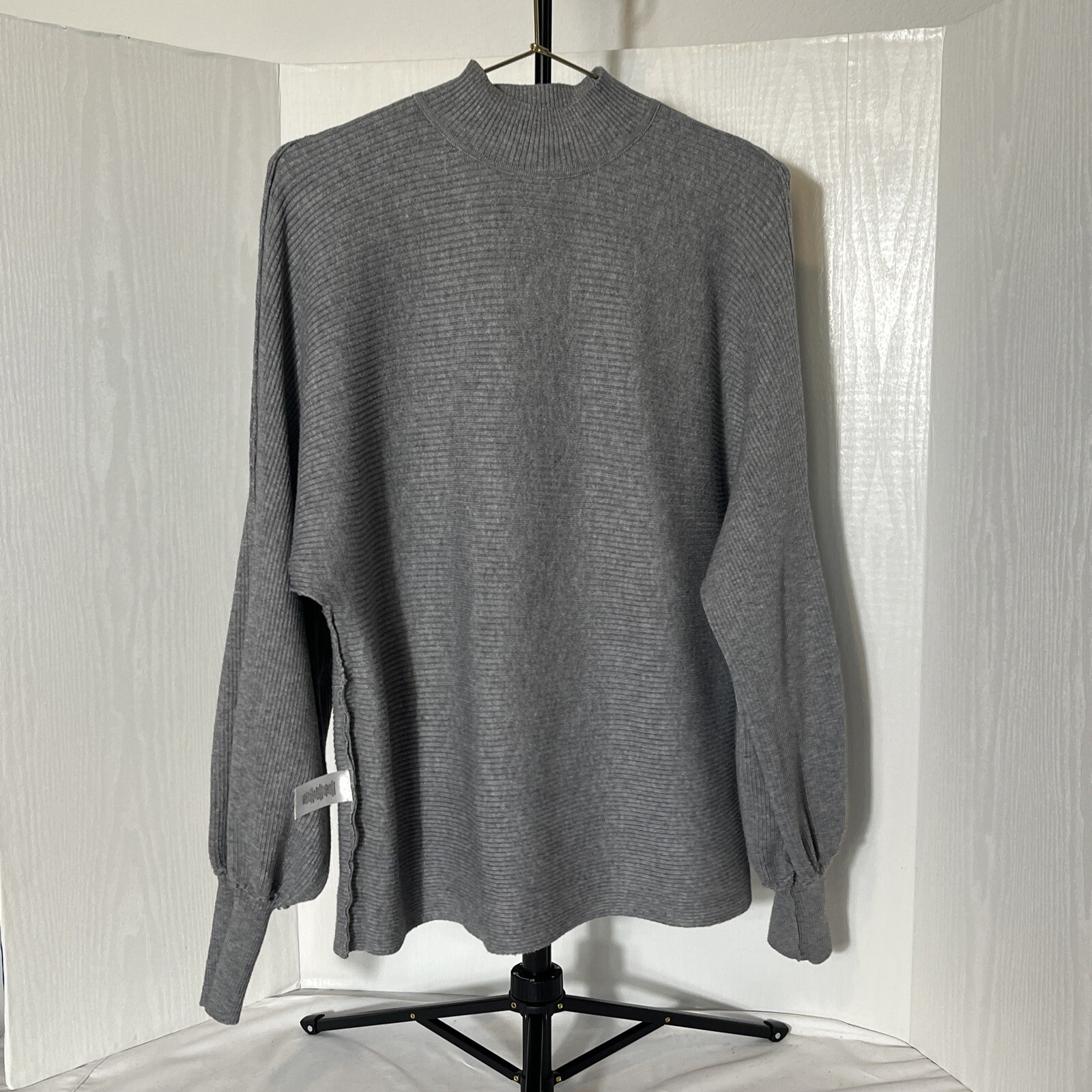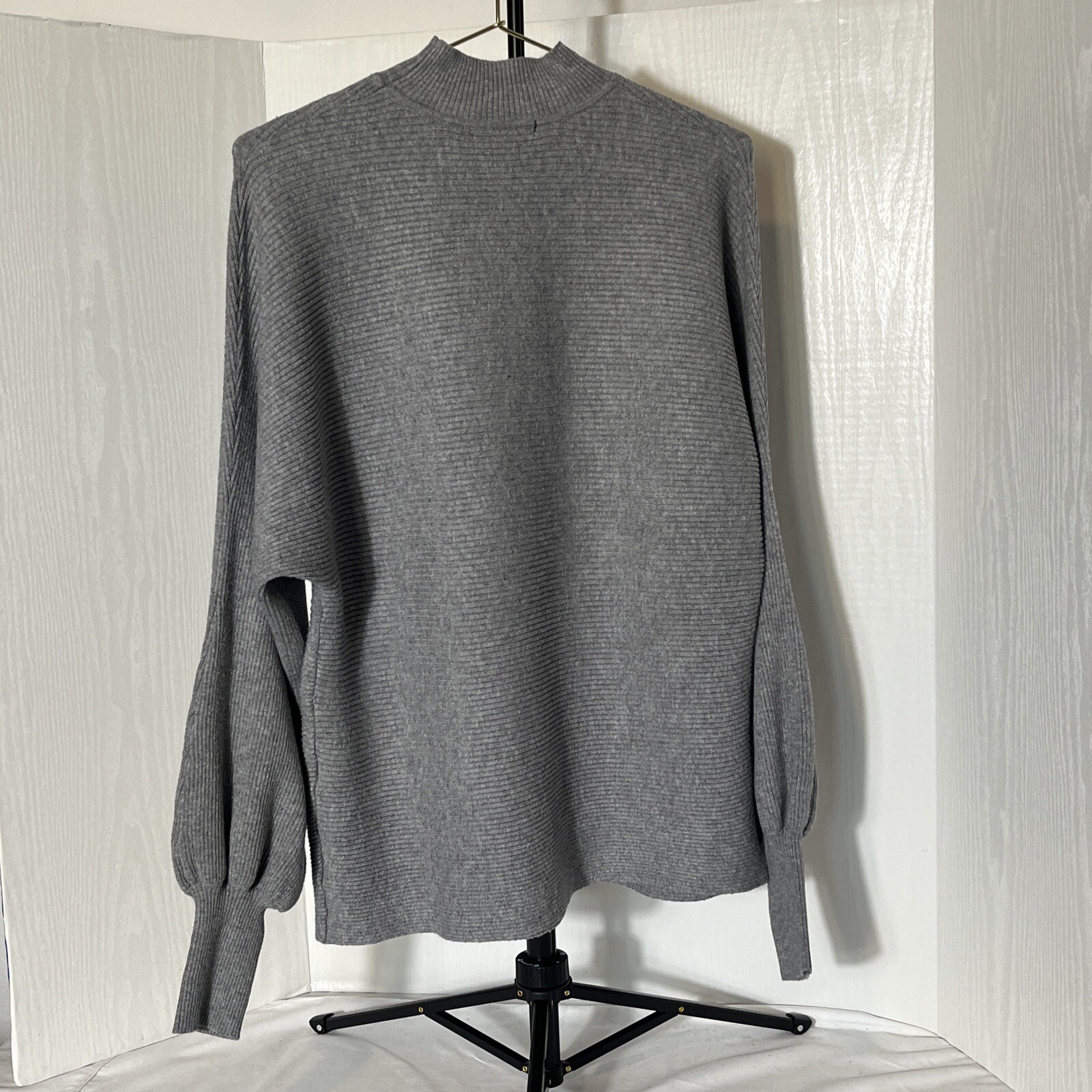 T Tahari Soft Raglan Long Sleeve Relaxed Mock Crew Gray Sweater Women's Size M