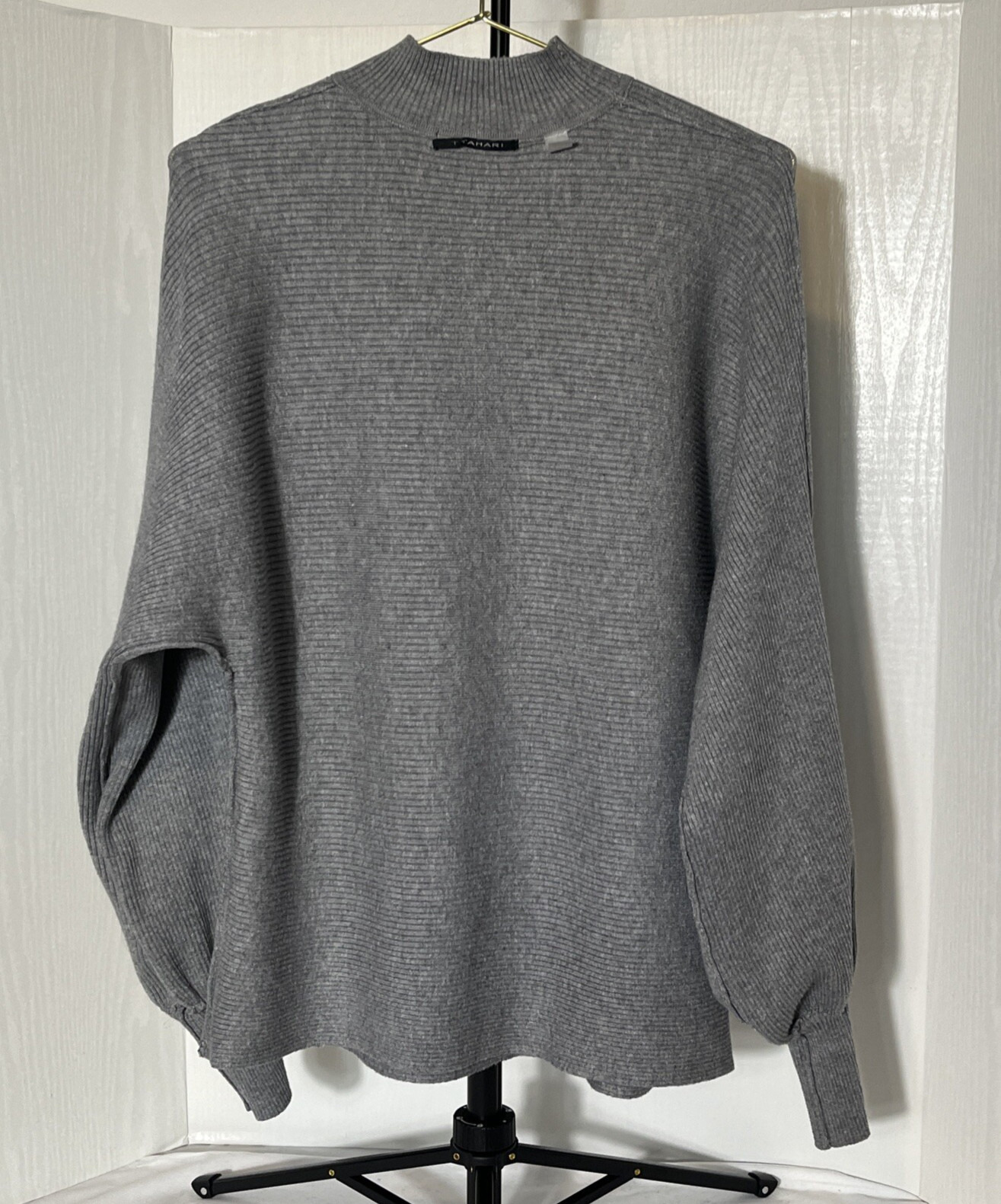 как выглядит T Tahari Soft Raglan Long Sleeve Relaxed Mock Crew Gray Sweater Womens Size M фото