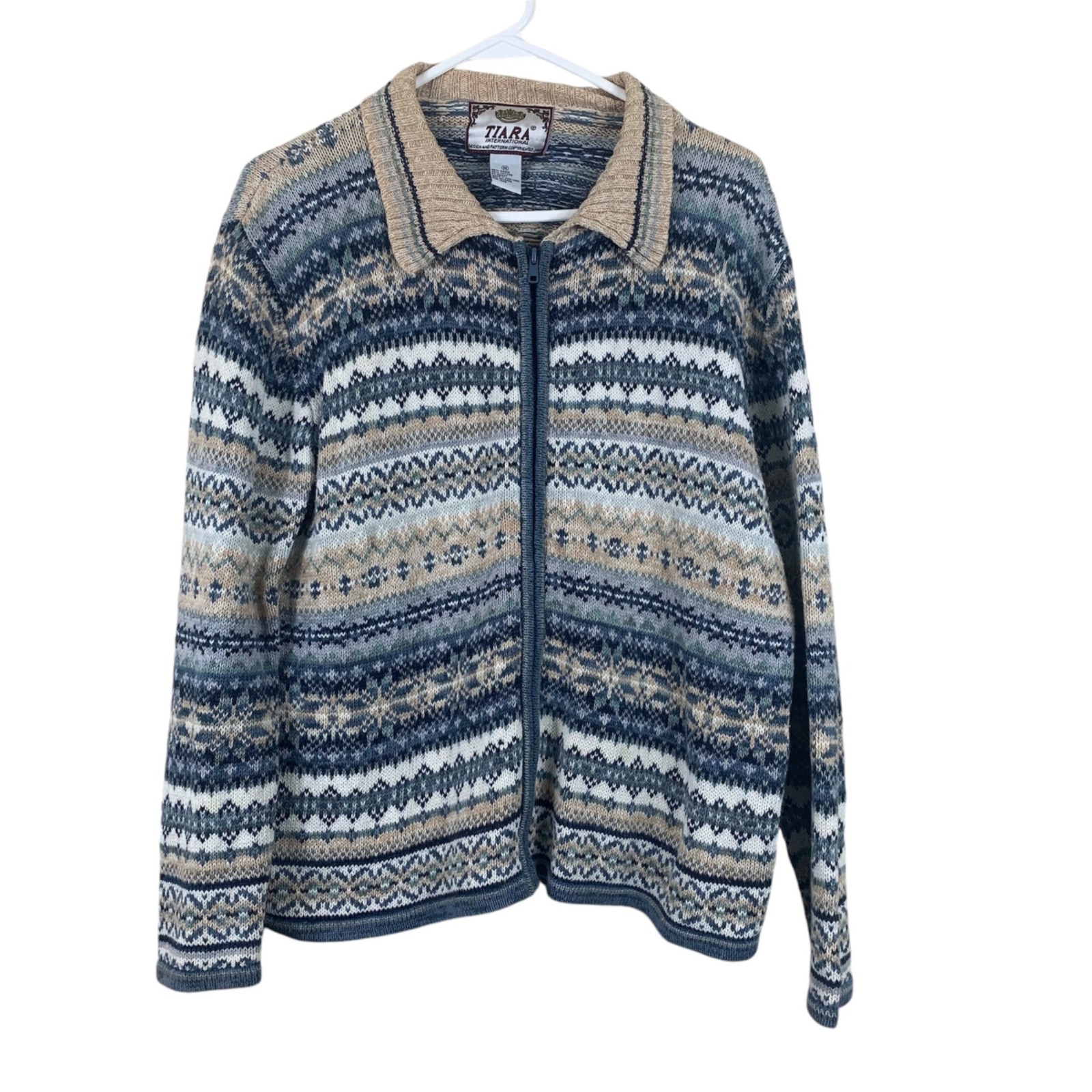 VTG Y2K 90s Tiara International Fair Isle Zip Cardigan Icelandic Knit Sz M