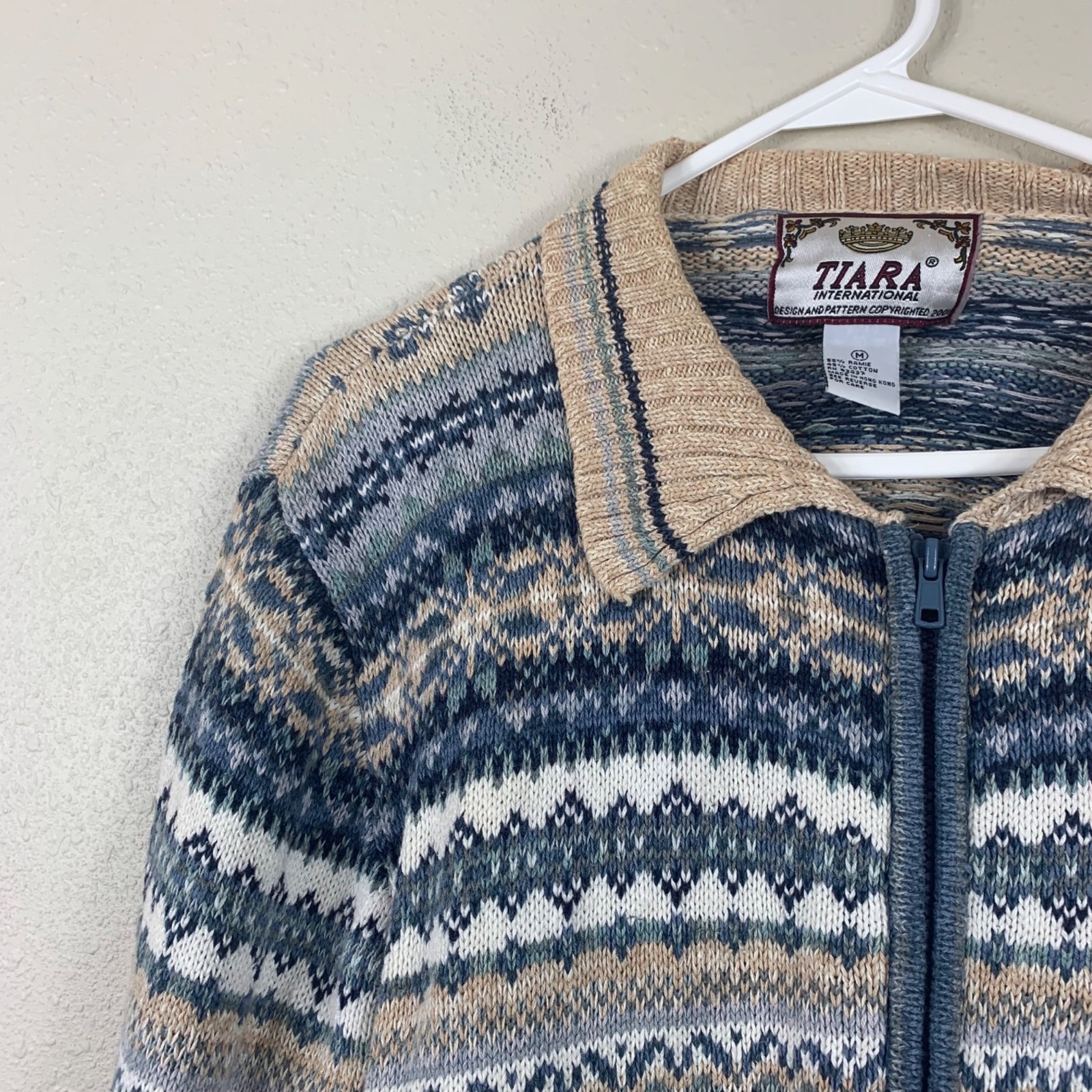 как выглядит VTG Y2K 90s Tiara International Fair Isle Zip Cardigan Icelandic Knit Sz M фото