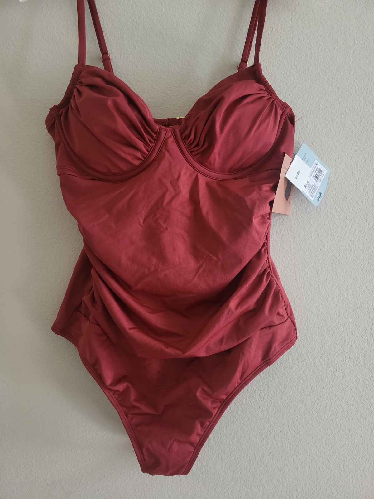 как выглядит Womens ShirRed Underwire Medium Coverage One Piece Swimsuit - Shade Shore S фото