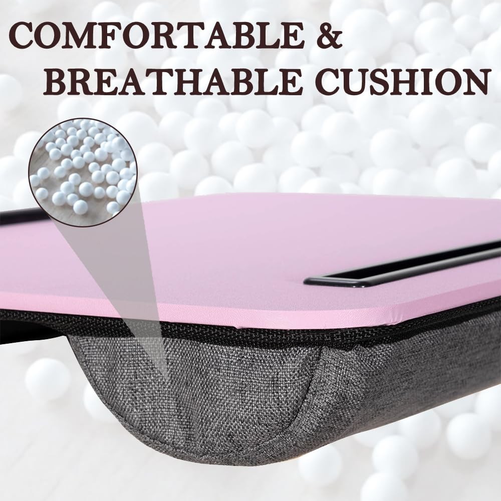 Portable Lap Desk with Cushion Tablet Slot - Fits 16-inch Laptops, Pink