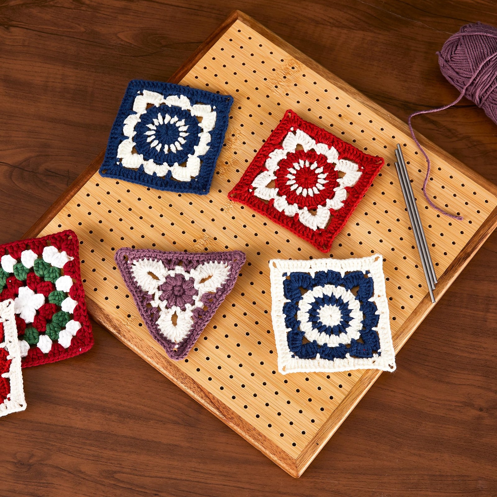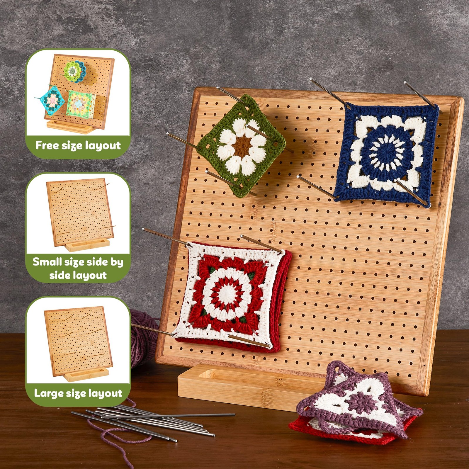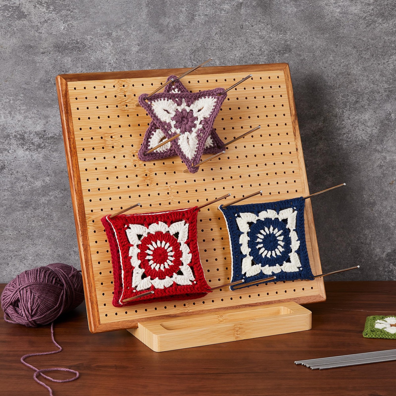 11.8 Crochet Blocking Board with 20 Pegs Pins, Granny Square Bamboo