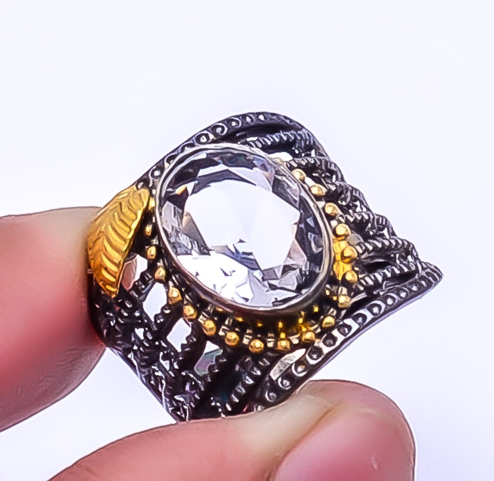 Black Tourmaline Black Rhodium 925 Sterling Silver Handmade Ring S.7.5 R92447514