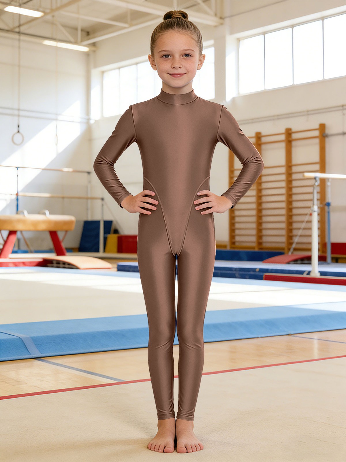 US Girls Mock Neck Glossy Bodysuit Long Sleeve Back Zipper Gymnastics Unitard