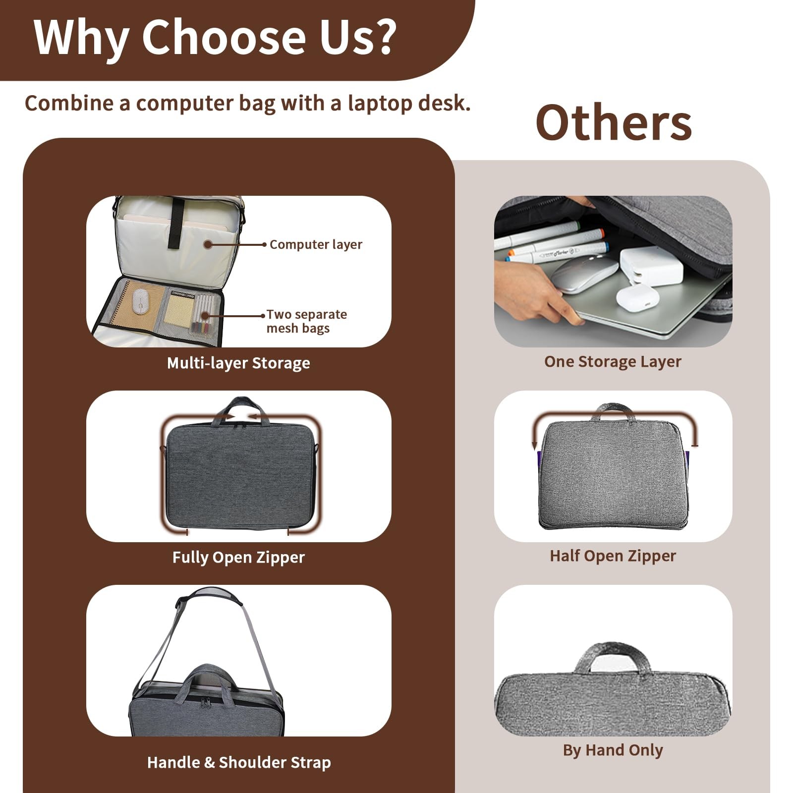Portable Lap Desk with Cushion Storage - Laptop Stand Fits 15.6-inch Walnut