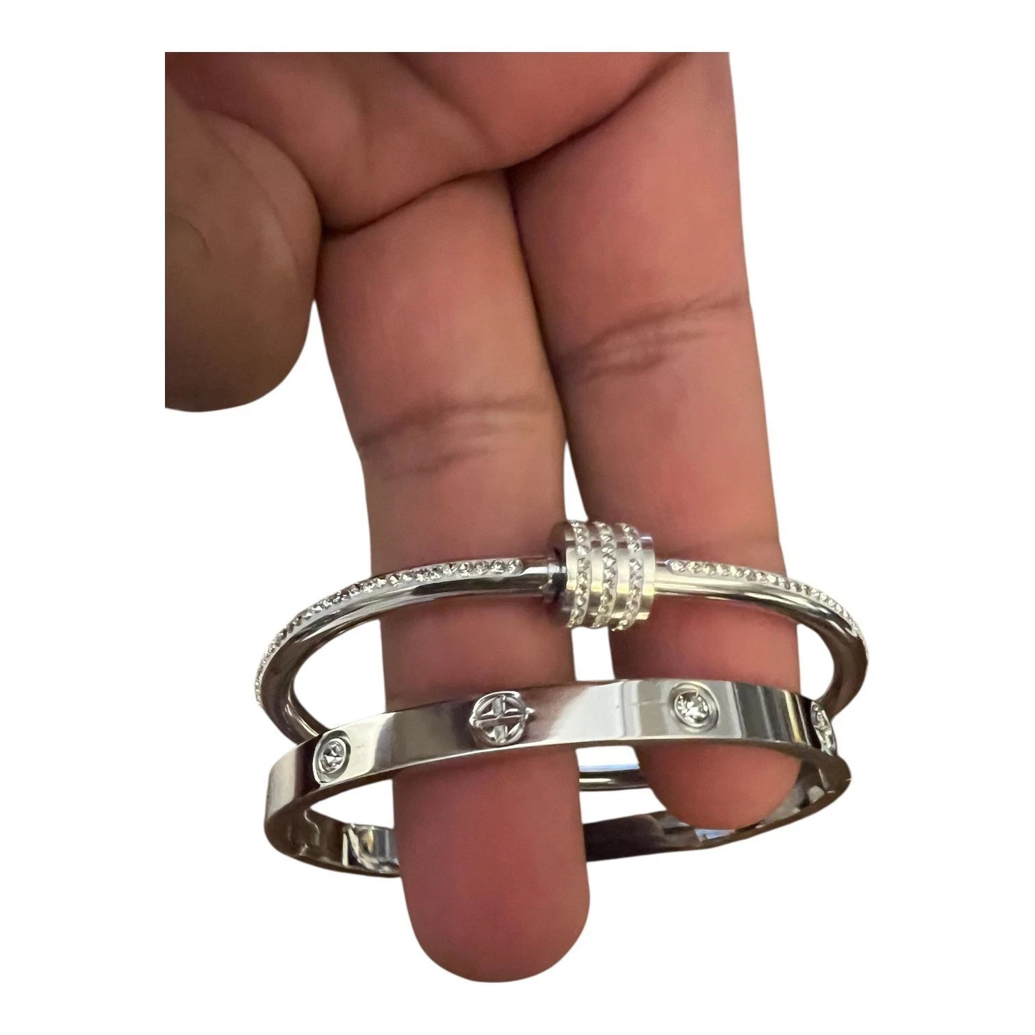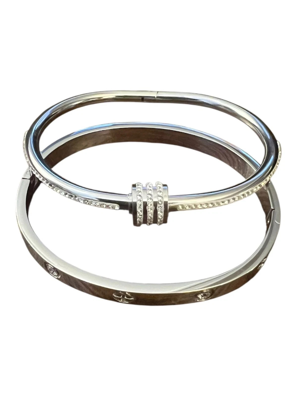 как выглядит Simple Silver Women s Minimalist Bangle Bracelets  2PCS Fashion Jewelry Set фото
