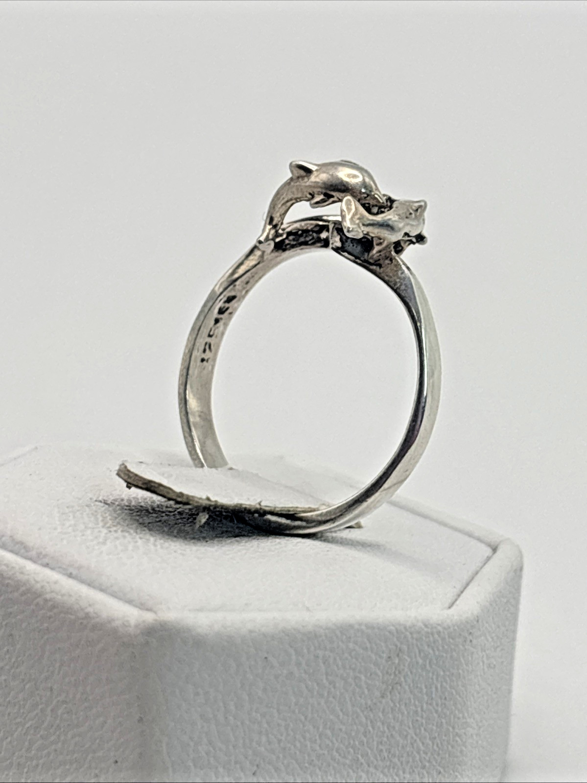 STUNNING Dolphin .925 Vintage Sterling Silver Estate Ring Size 8.25