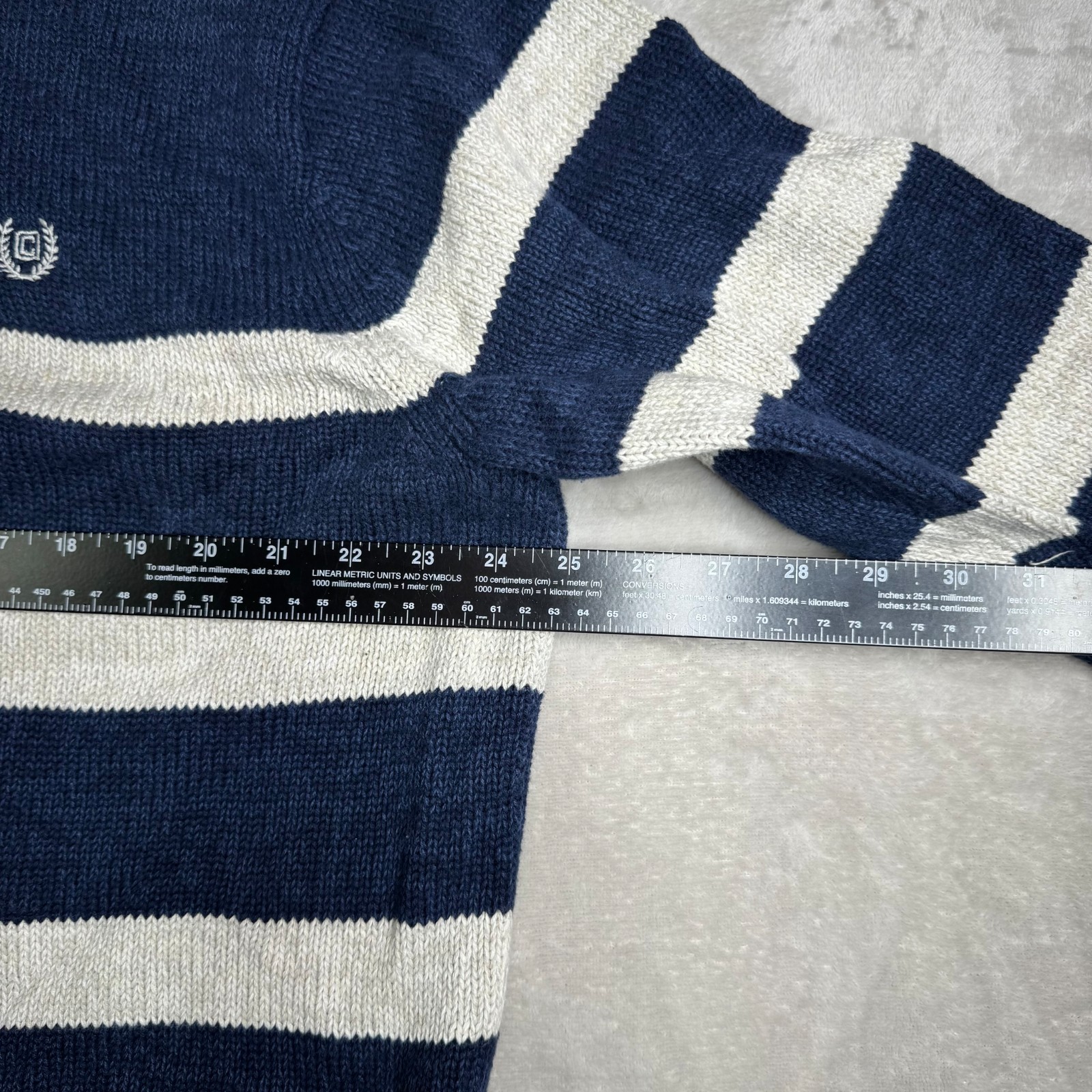как выглядит CHAPS Sweater Mens XXL Button Mock Neck Striped Jumper Pullover 100 Cotton Blue фото