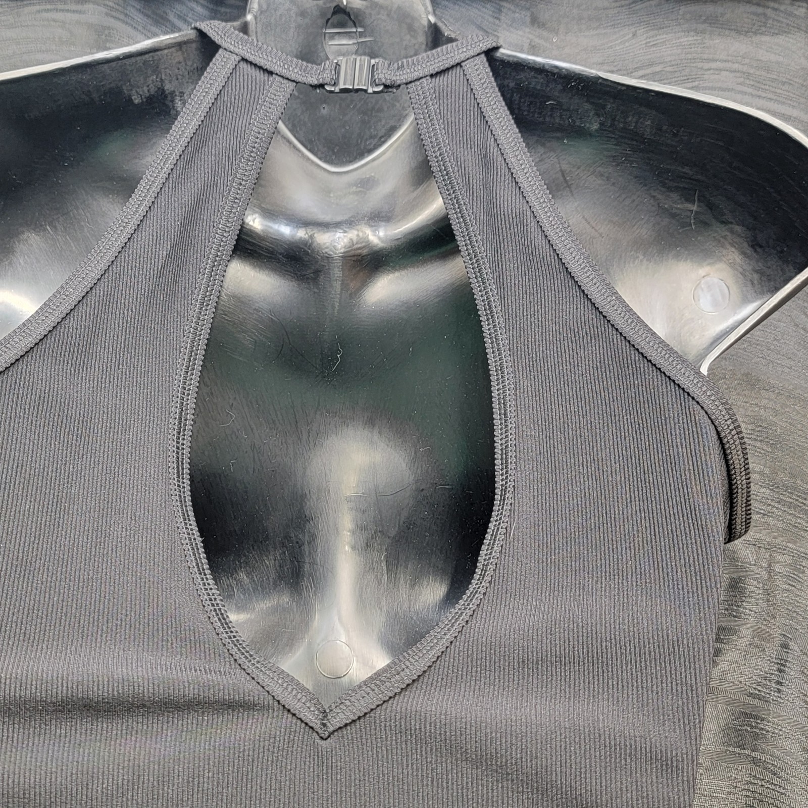 как выглядит Danz N Motion Ribbed Cutaway Tank Leotard Black Keyhole Back W/Latch SZ. XL фото