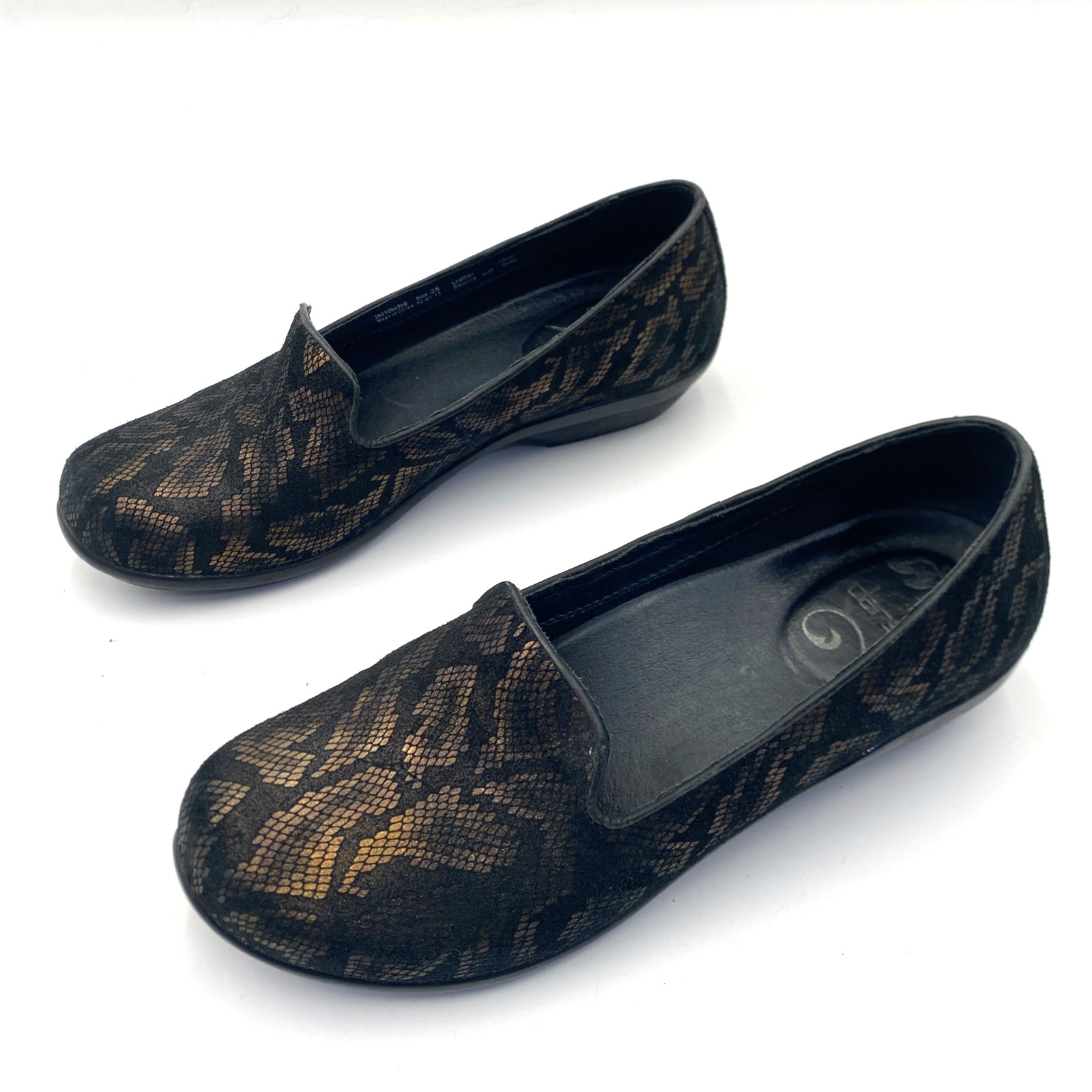 Dansko Olivia Bronze Black Leather Snake Skin Loafers Women Shoes Size 38 US 7.5