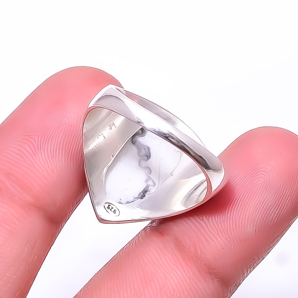 как выглядит White Howlite - United States 925 Sterling Silver Ring S.9.5 R20, Christmas Gift фото