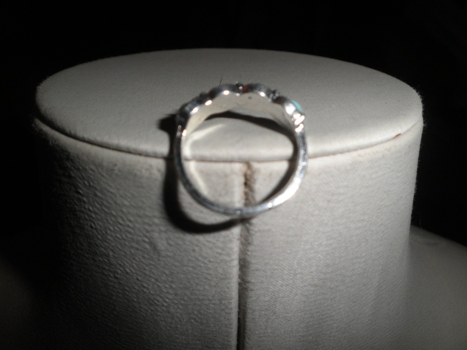 Sterling Silver 4 round turquoise stones Decorated Ring for Women size 6
