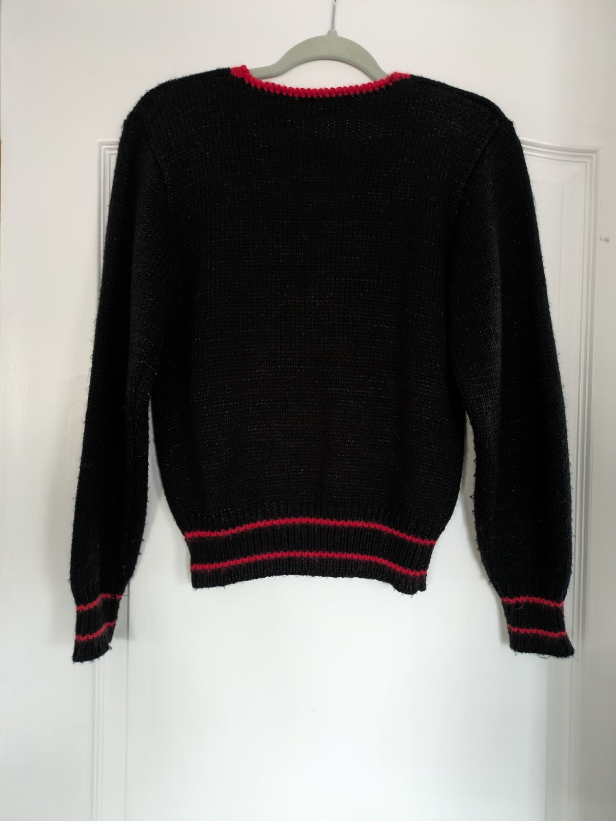 как выглядит Vintage 80s Leaf Sweater Black Colorful Knit V-Neck Statement Cozy Retro фото