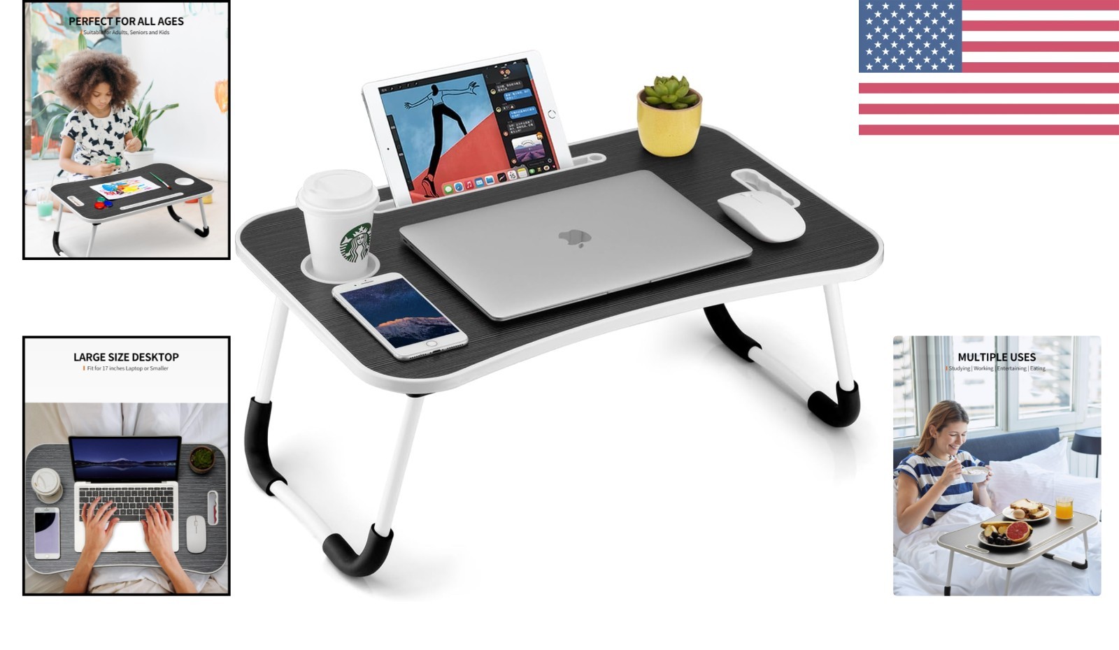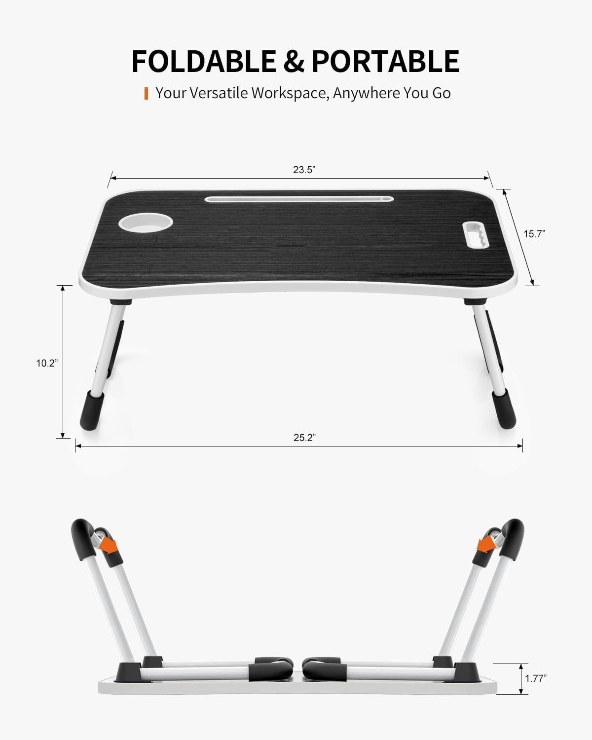 Foldable Laptop Table with Cup Holder Tablet Slot - Versatile Portable