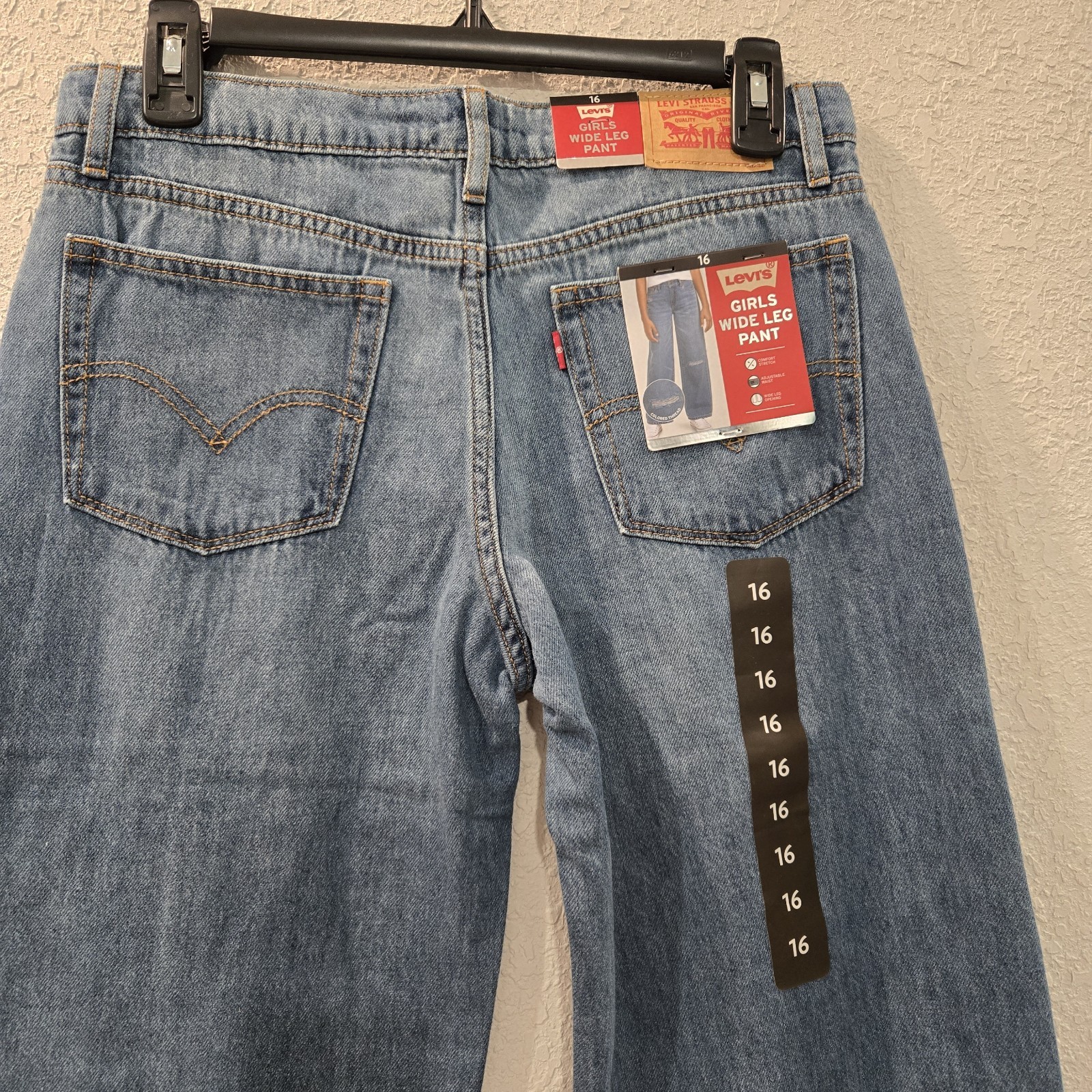 как выглядит Levis Girls Wide Leg Denim Jeans W/ PastelThreads Adjustable Waist Sz 16 Cotton фото