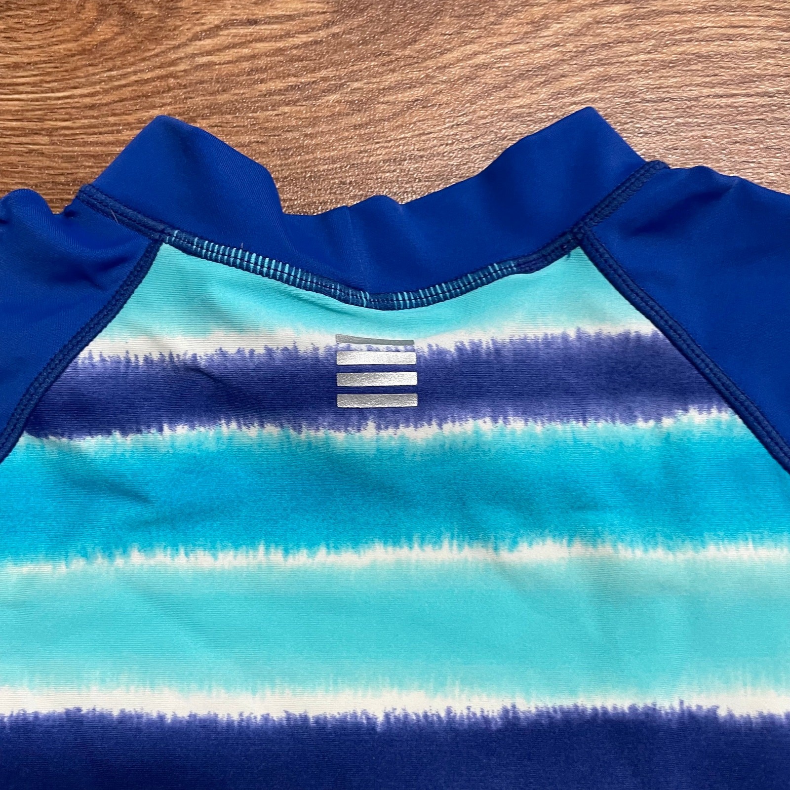 как выглядит Lands End Blue Teal Girls Short Sleeve Rash Guard Size 4/Small Striped фото