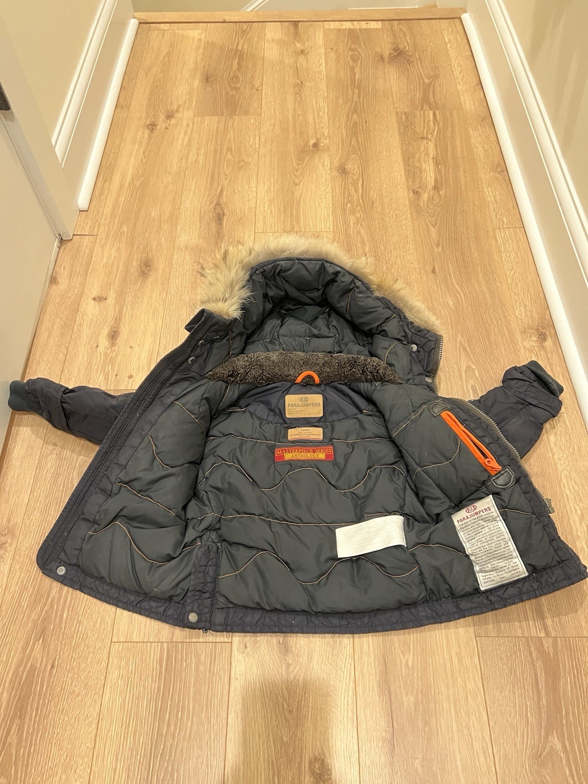 Parajumpers Boys 4 Years Down Jacket Black Coyote Fur Hood Parka Full Zip