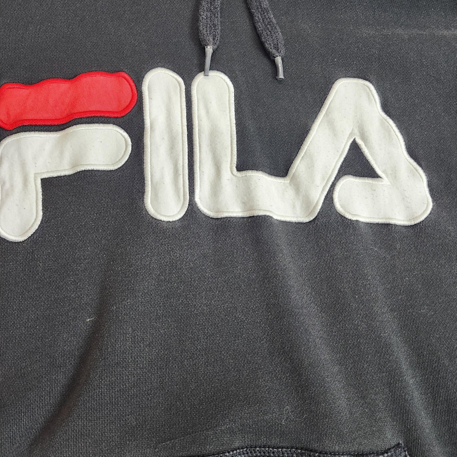 Fila Hoodie Mens XL Black Pullover Fleece Big Logo Graphic Kangaroo Sweatshirt