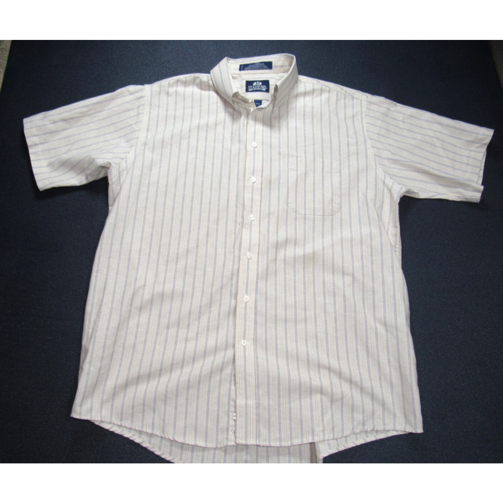 Stafford Men s Striped Cotton Button-Down Shirt L 17.5 Collar Short Sleeve