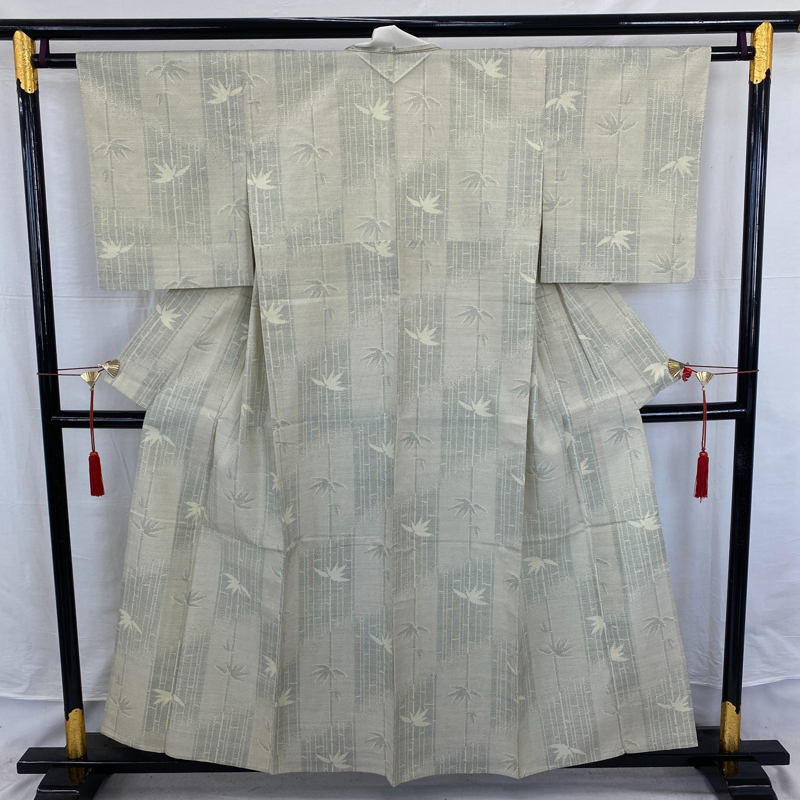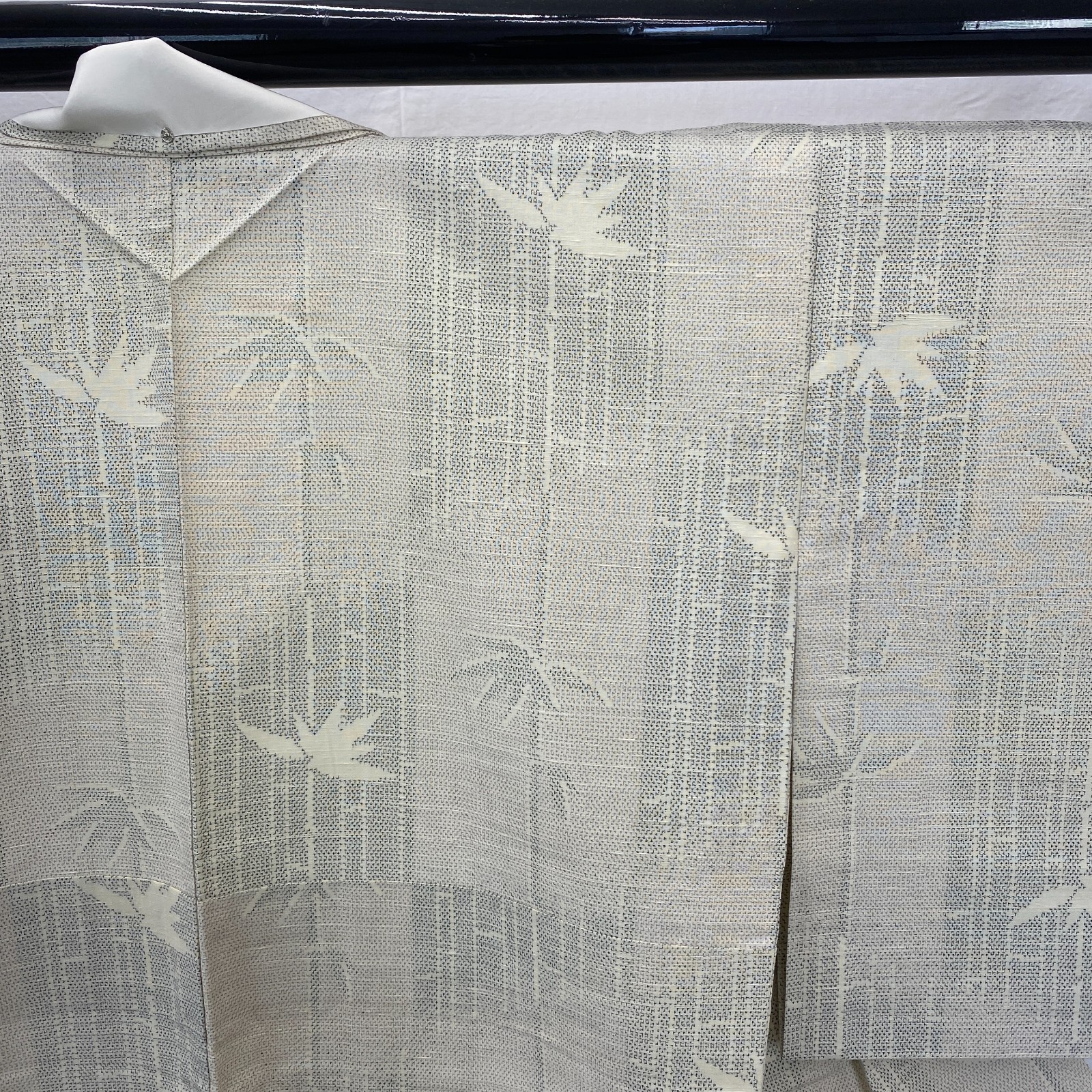 как выглядит Japanese Vintage Kimono Silk White Tumugi No Lining Traditional Length 60 in фото