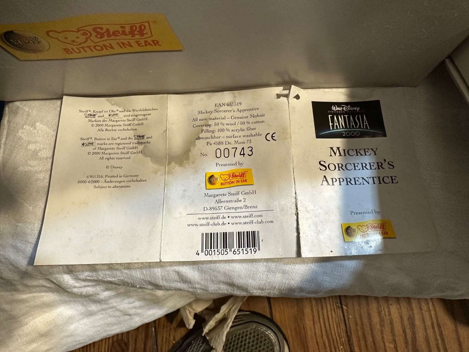 Steiff FANTASIA 2000 Mickey Sorcerer s Apprentice Limited edition Doll