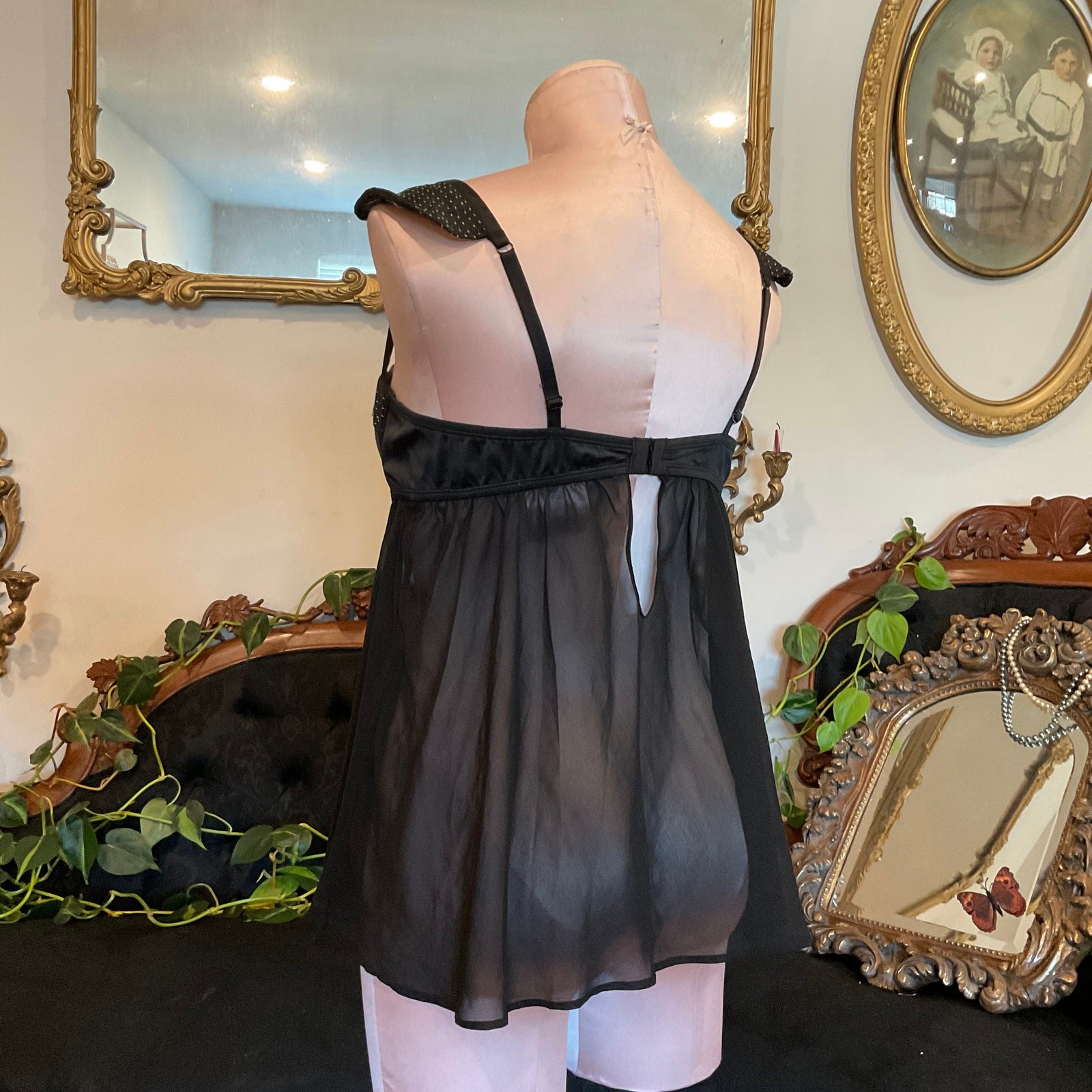 как выглядит Vintage Victorias secret Sheer Babydoll Lingerie Slip Dress Size 36C Black фото